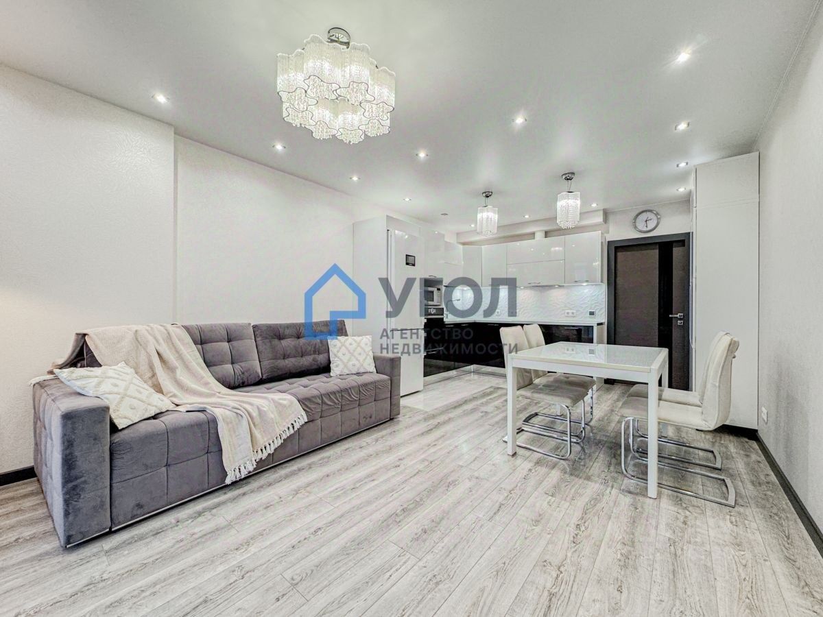 В продаже — двухкомнатная квартира с кухней-гостиной и панорамным остеклением в центре Самары. Высокий этаж, вид на город и Волгу, дом комфорт-класса 2012 года на пересечении Полевой и Арцыбушевской.