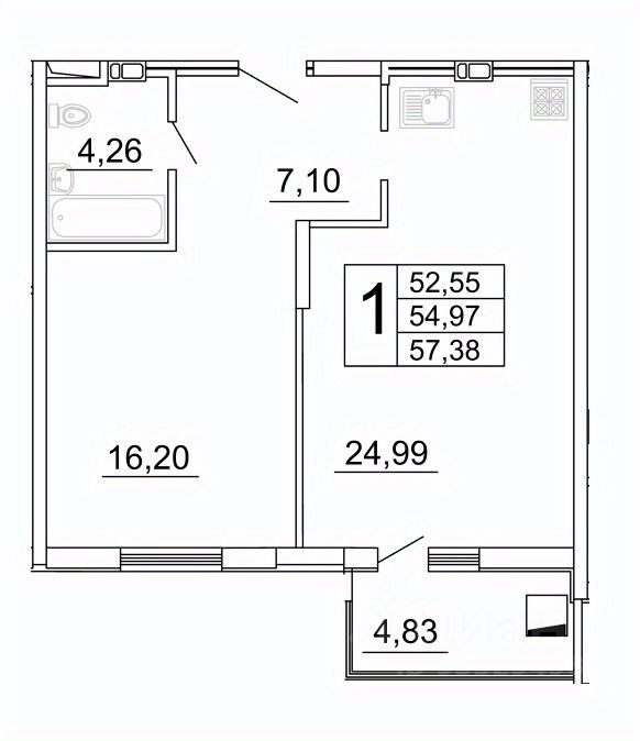 продам 1-к, Дыбенко, 59 280 000 ₽