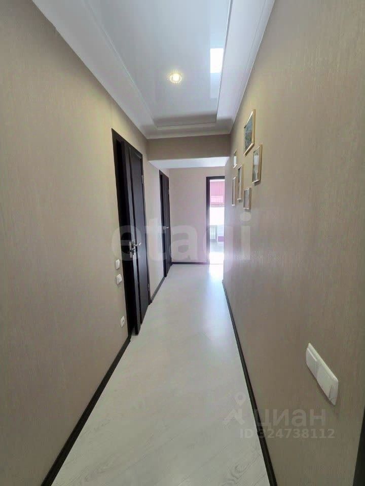 Просторная 4-комнатная квартира площадью 129,6 м² предлагает рациональную и комфортную планировку для жизни. Объект состоит из трех изолированных спален, светлой гостиной, кухни-столовой, двух санузлов, гардеробной и постирочной комнаты. Центром притяжения становится кухня площадью 14,7 м², оснащенная гарнитуром ''Мария'' и встраиваемой техникой Siemens, включая посудомоечную машину, варочную панель, вытяжку и микроволновую печь. Две спальни размером 18 и 17 м² оборудованы системами хранения, третья спальня на 15 м² функционально зонирована под библиотеку и рабочее место. Гостиная площадью 21 м² сохраняет мягкую зону для отдыха. Санузлы разделены: основной на 6 м² с итальянской сантехникой и ванной, гостевой на 3,5 м² с душевой кабиной. В квартире установлен теплый пол в коридорах, санузлах и на балконах, смонтированы четыре сплит-системы, водонагреватель и система фильтрации воды. Дополнительные преимущества — три застекленные лоджии, вместительная гардеробная и отдельная постирочная с подводкой для техники. Дизайнерский ремонт выполнен с применением материалов премиум-сегмента и обеспечивает целостность стилевого решения во всех помещениях.