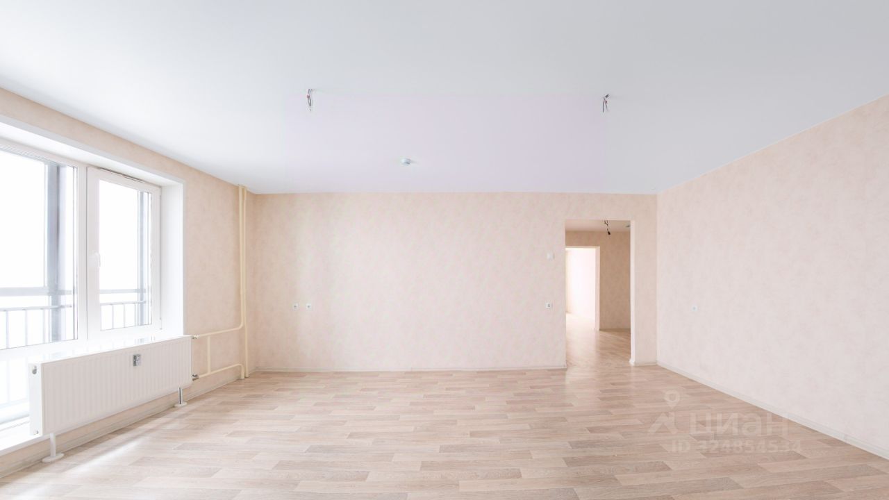 Квартира с чистовой отделкой: светлые обои и линолеум, натяжной потолок, радиаторы, розетки, выключатели, сантехника и кафель на полу в санузле. Можно заселяться сразу после сдачи дома!