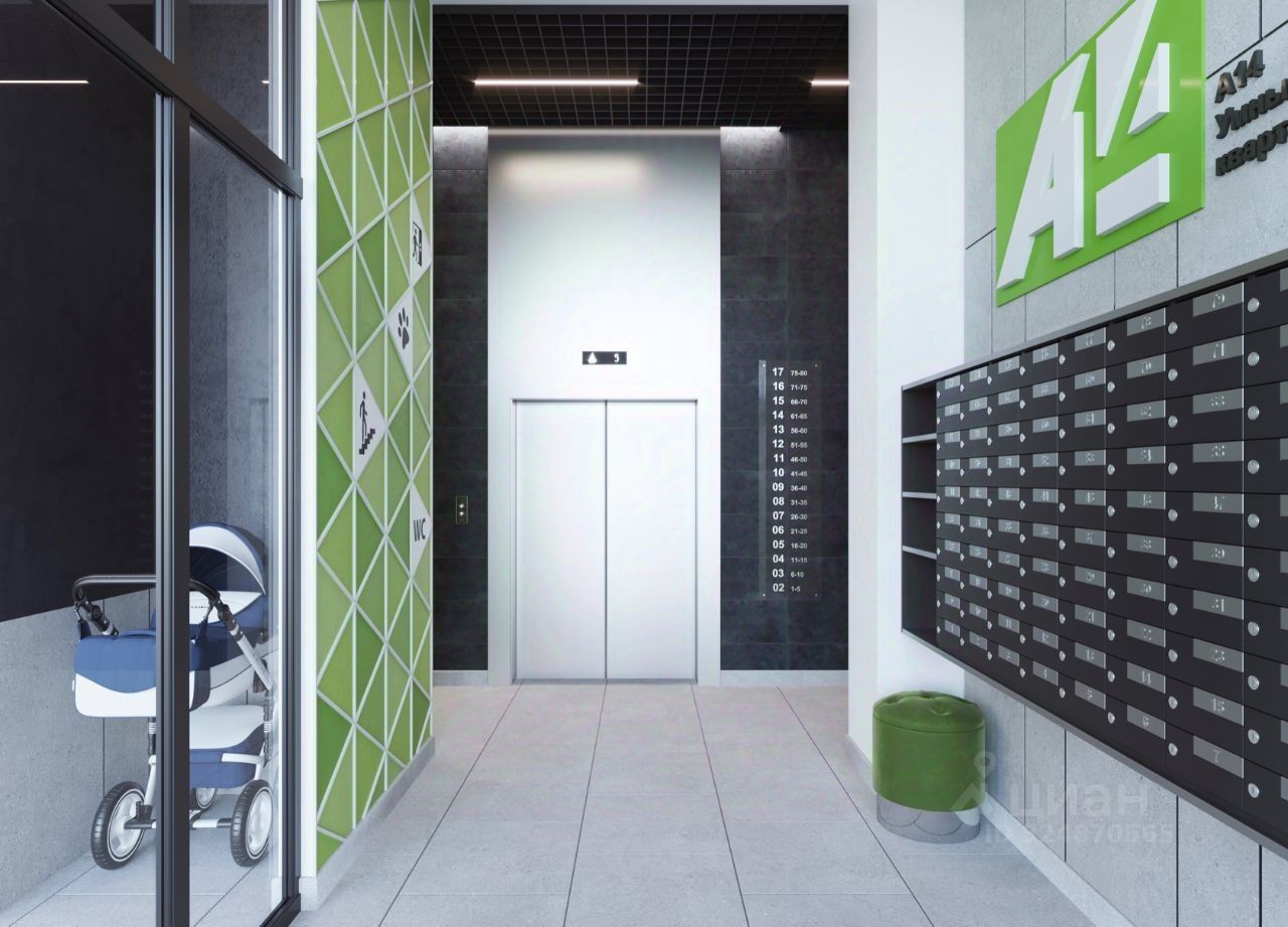 На первых этажах размещаем просторные колясочные. Вы сможете оставить коляску, велосипед или электросамокат на первом этаже, не поднимая их до своей квартиры, и они не будут занимать место в вашей прихожей или кладовке. В колясочных предусмотрены поддоны для мытья колес велосипедов и детских колясок, а также лап ваших домашних питомцев. Перед входами в подъезды предусмотрены велопарковки. Из окон А14 будут открываться замечательные виды на пойму реки Позимь, лес микрорайона ''Ракетный''.