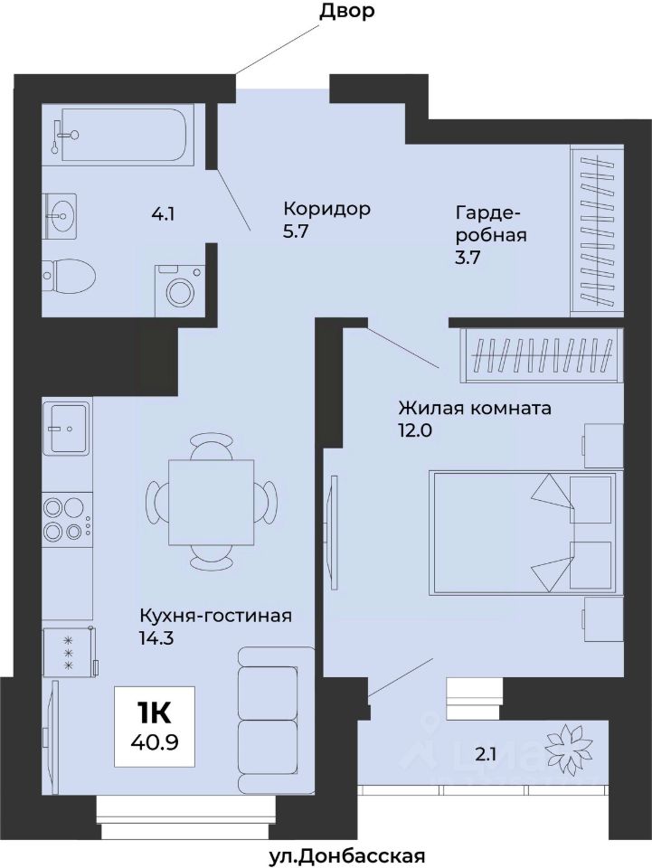 продам 1-к, Донбасская, 13а стр.6 888 000 ₽