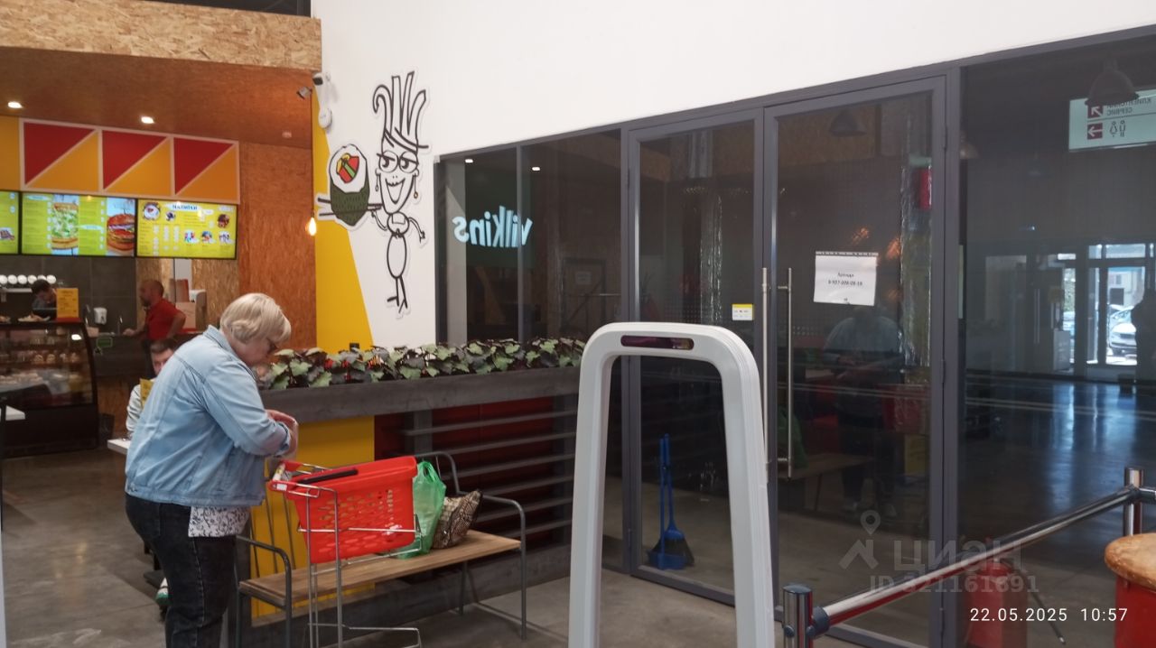 Помещение располагается в при кассовой зоне супермаркета с высокой проходимостью покупателей и высоким средним чеком.