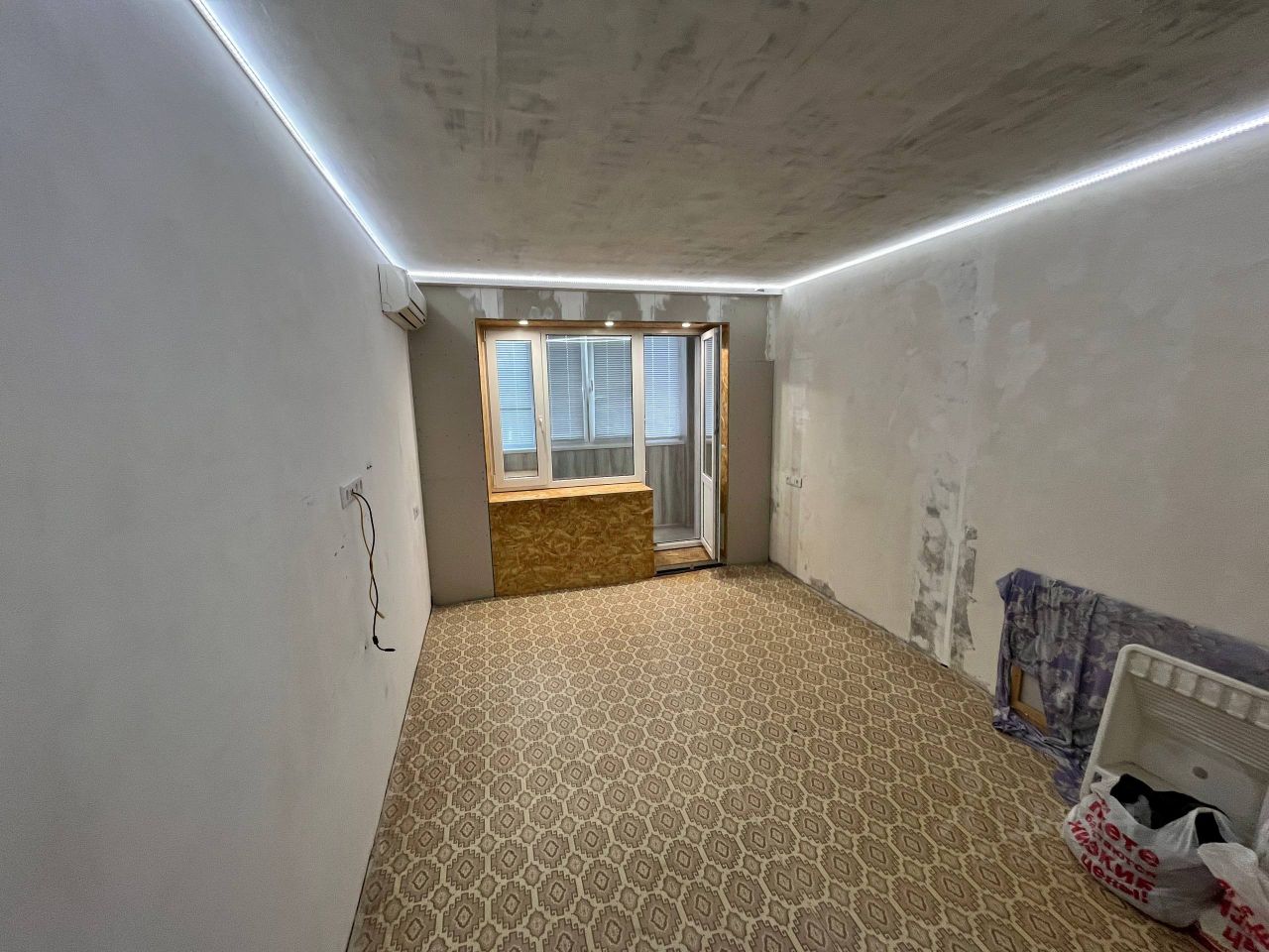 Планировка самолёт: комнаты изолированные, окна на две стороны — в квартире много света и свежего воздуха. Утеплённый балкон с тёплыми полами и рабочим местом — идеально для кабинета или зоны отдыха. Квартира подготовлена к ремонту: стены выровнены (подготовка ещё продолжается), ванная готова под плитку. В подарок остаются кухня, сантехника и часть строительных материалов — можно сразу заезжать и делать ремонт под себя.
