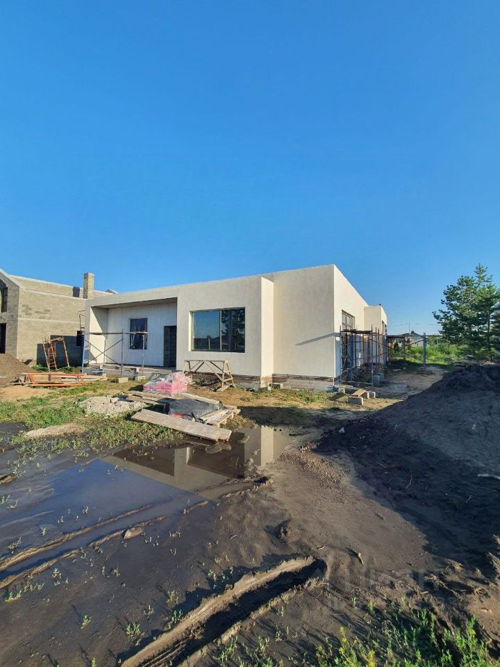 Начало строительства апрель 2023.Проектно-сметная,расчетная,дизайнерская документация выполнена в полном объеме. Фундамент свайно-ростверковый глубина свай 2,5м. Расчетное сечение ростверка 0.6*0 4м. Арматура ф12. Выполнена обратная засыпка суглинком что даёт дополнительную гидроизоляцию основных элементов фундамента. При бетонировании плиты использовалась арматура ф10 с сечением 0.4*0.4м Стены выполнены из керамзито -бетонного блока, наполнение керамзита 50% толщина 0.4м(в блок). Стены утеплены каменной ватой толщиной 50мм. Фасад декоративная штукатурка. Отдельные элементы фасада выполнены из плитки камня и дерева. Перекрытия выполнены из пустотных железобетонных плит. Кровля утепление 200мм и два слоя кровельного материала с наружным водостоком. Окна выполнены из профиля Rexay 70мм двойной мультифункциональный пакет. Выполнено благоустройство территории участка посажены декоративные деревья (туи,голубые ели, можевельник) На участке имеется индивидуальная скважина глубиной 60м, выполнен септик ф2 метра и глубиной 5м. Внутри дома выполнены электромонтажные и сантехнические работы, штукатурные работы, теплый пол со стяжкой. В доме предусмотрены и выполнены внутренний (гостевой) камин и зона барбекю на веранде. Предчестовые работы выполнены в полном объеме. По периметру участника выполнен еврозабор. Стоянка или навес предусмотрены. Освещение дома выполнено. Дом продается на любом этапе строительства. При продаже участка учитывается обмен на жилье автотранспорт земельные участки.