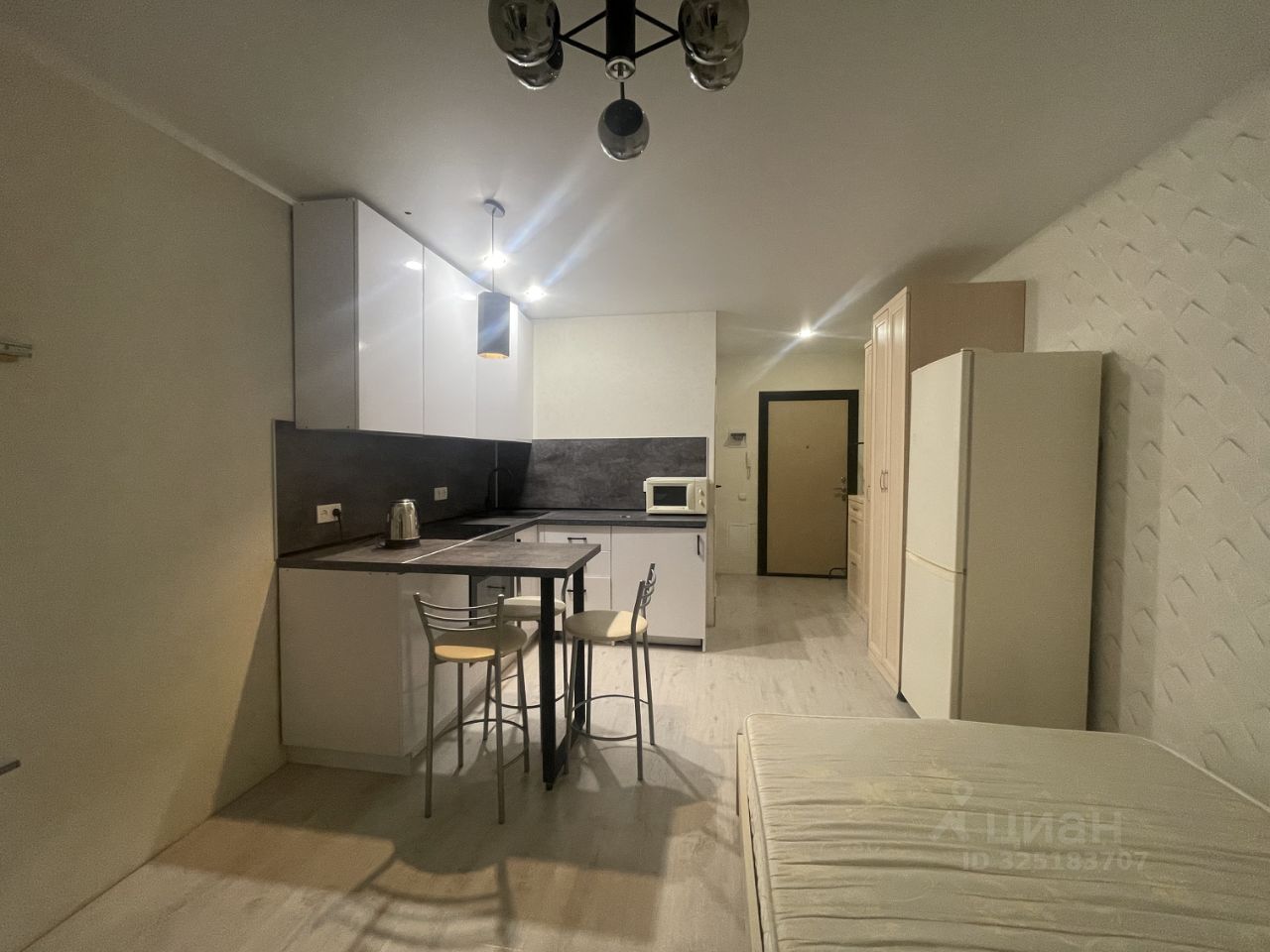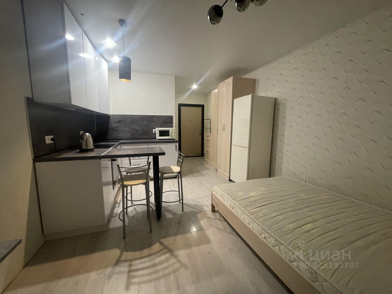 Студия с косметическим ремонтом, полностью готова к проживанию. В квартире есть вся необходимая мебель: оборудованная кухня и уютное место для отдыха. Из техники — кондиционер, холодильник и стиральная машина, что делает проживание максимально комфортным. В санузле установлена душевая кабина. Также в квартире есть балкон, где можно наслаждаться свежим воздухом.