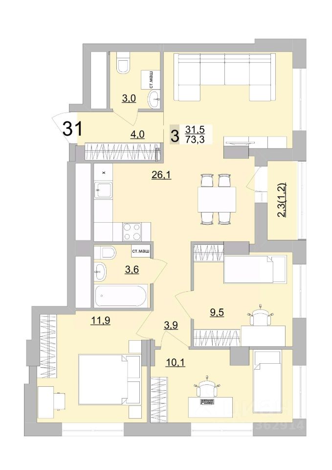 Жилая площадь31,5 м2