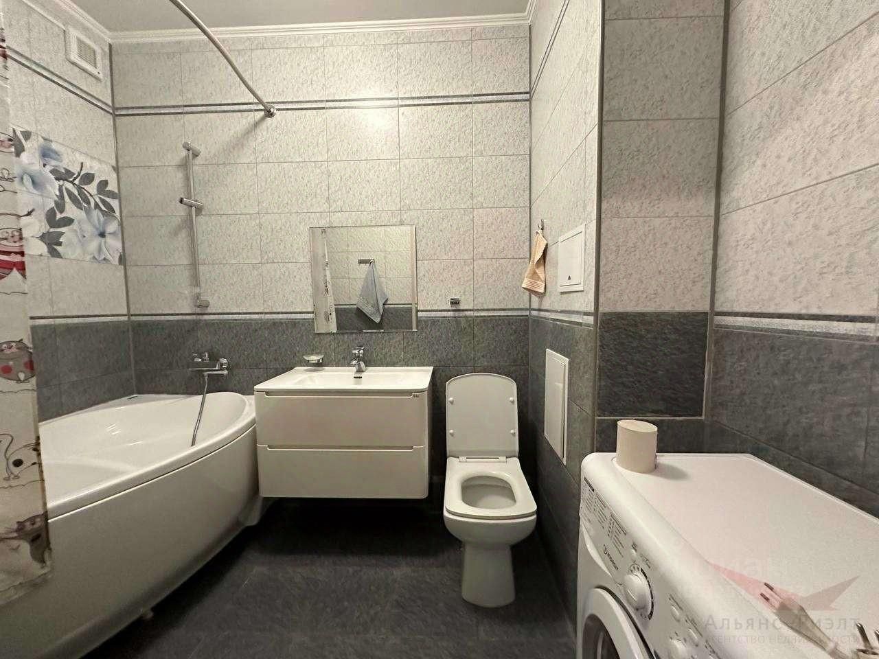 Совмещенный санузел оснащен современной сантехникой и стиральной машиной. Лоджия застеклена и утеплена, что позволяет использовать ее круглый год.