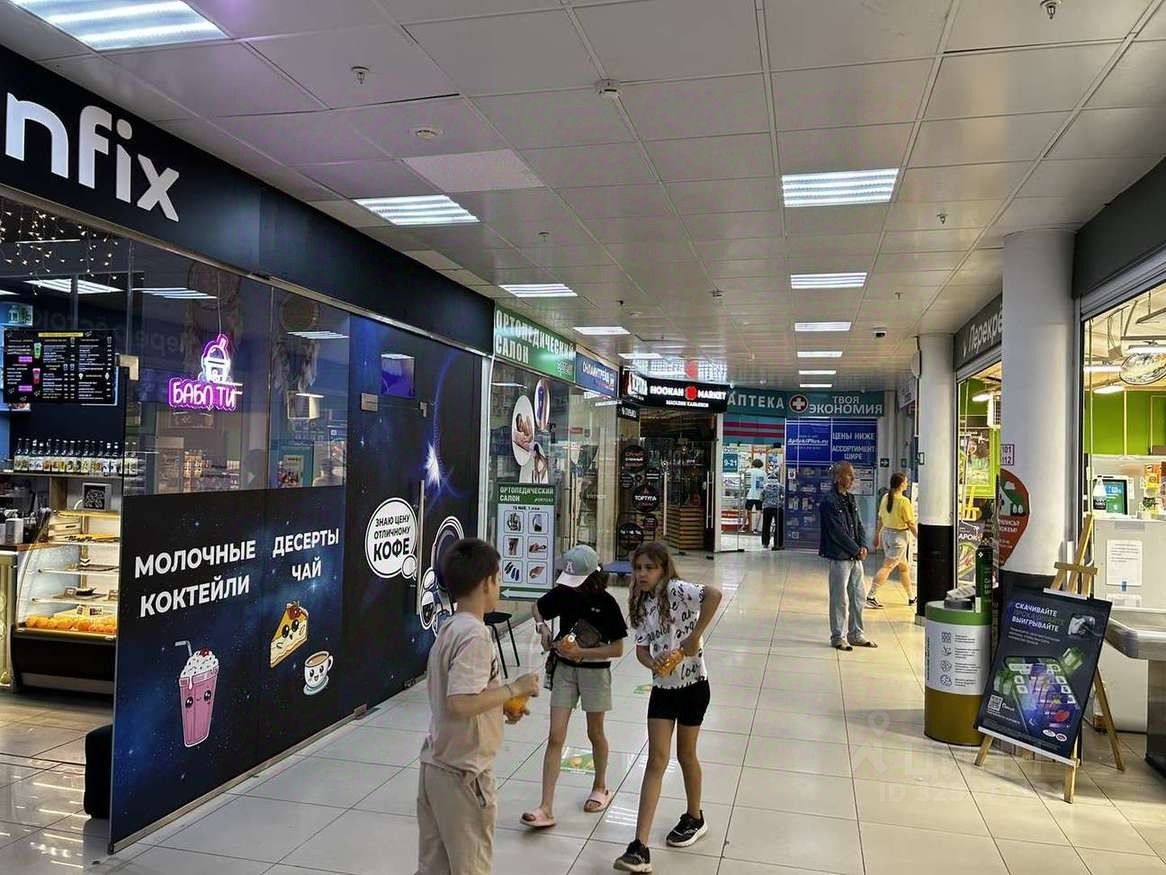 Секция в прикассовой зоне супермаркета ''Перекрёсток'' в ТЦ ''Май''. Высокий трафик, создаваемый супермаркетом. Свободная планировка, витрины.