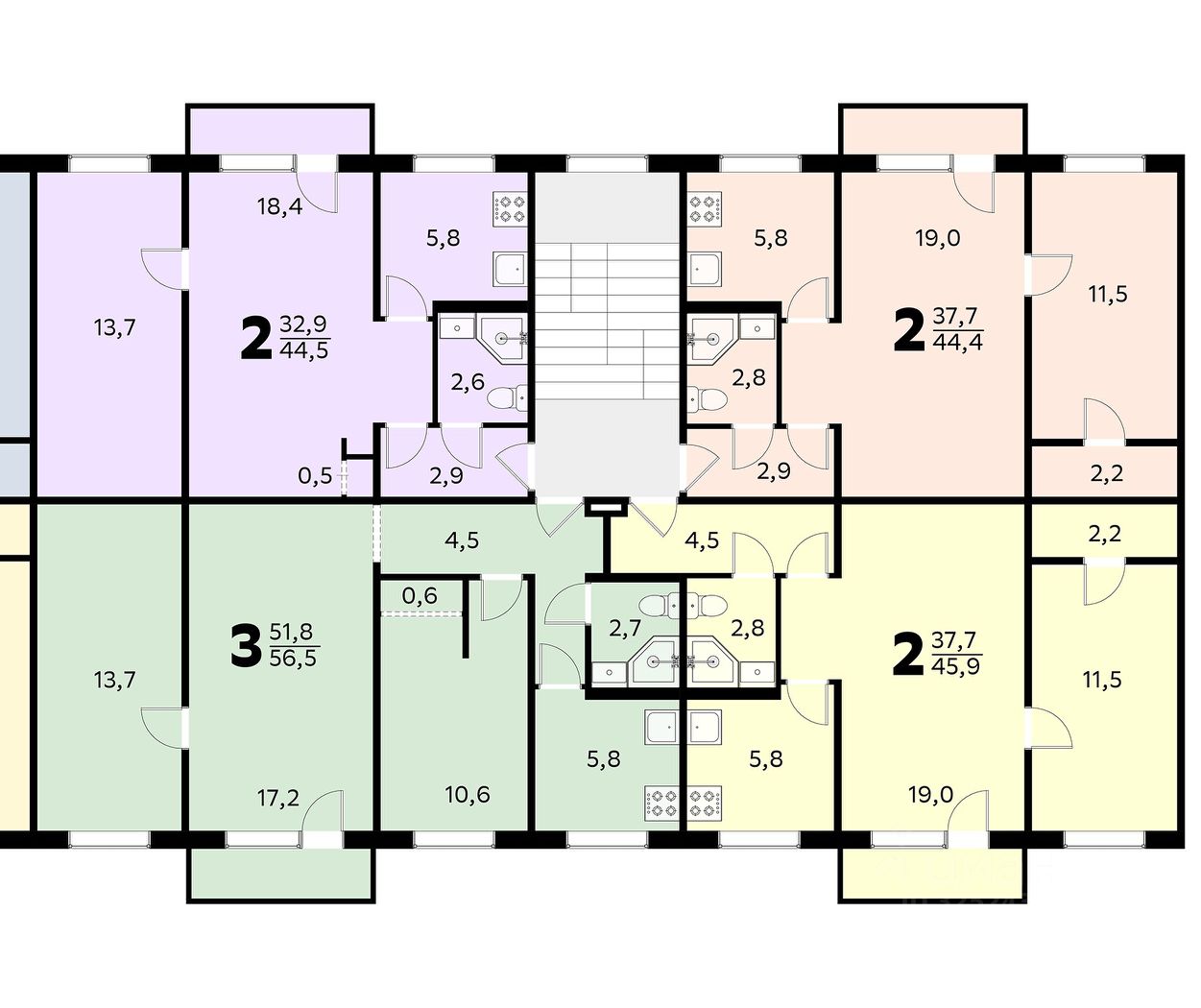 2-комнатная квартира, общей площадью 44.1 м², по адресу: ул. Партизанская, 194.