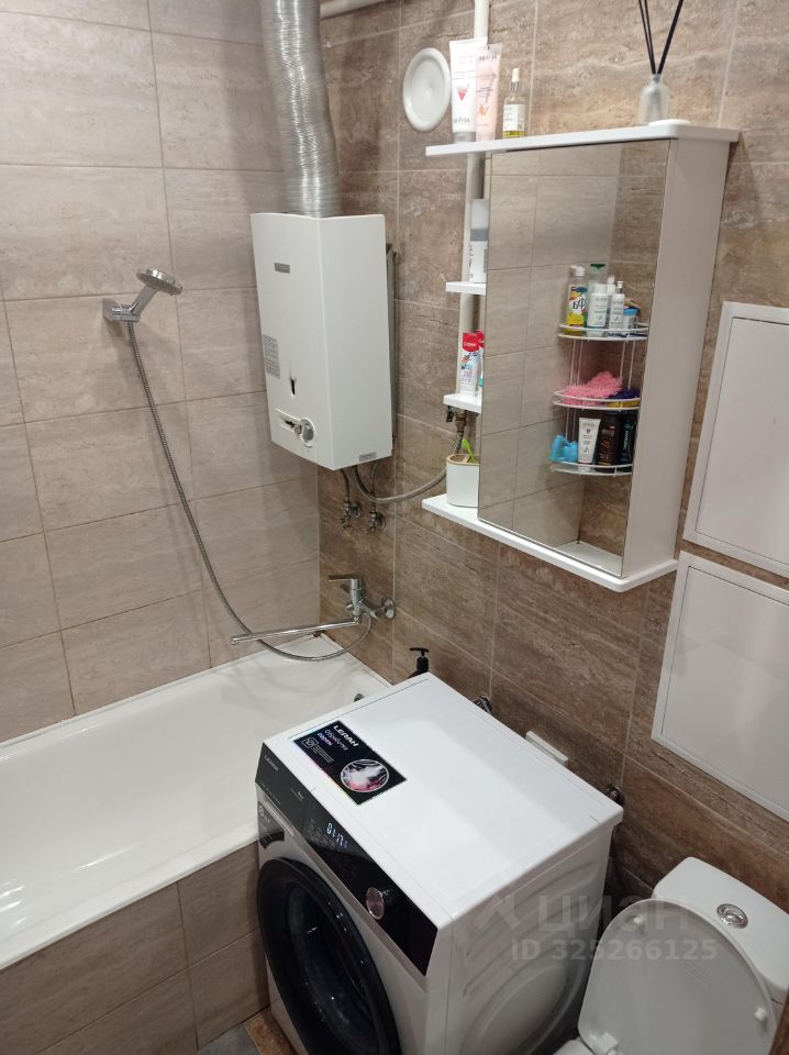 Кухня компактная, но функциональная. Санузел совмещенный, отделан плиткой.