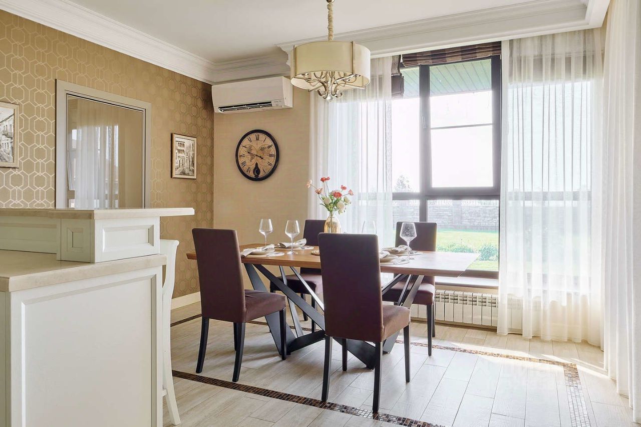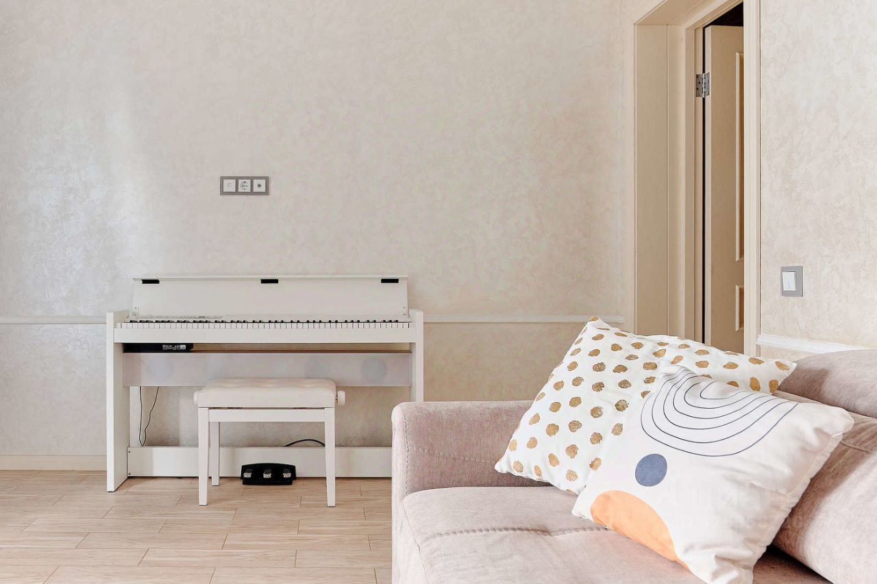 Интерьер выполнен в спокойных пастельных оттенках.