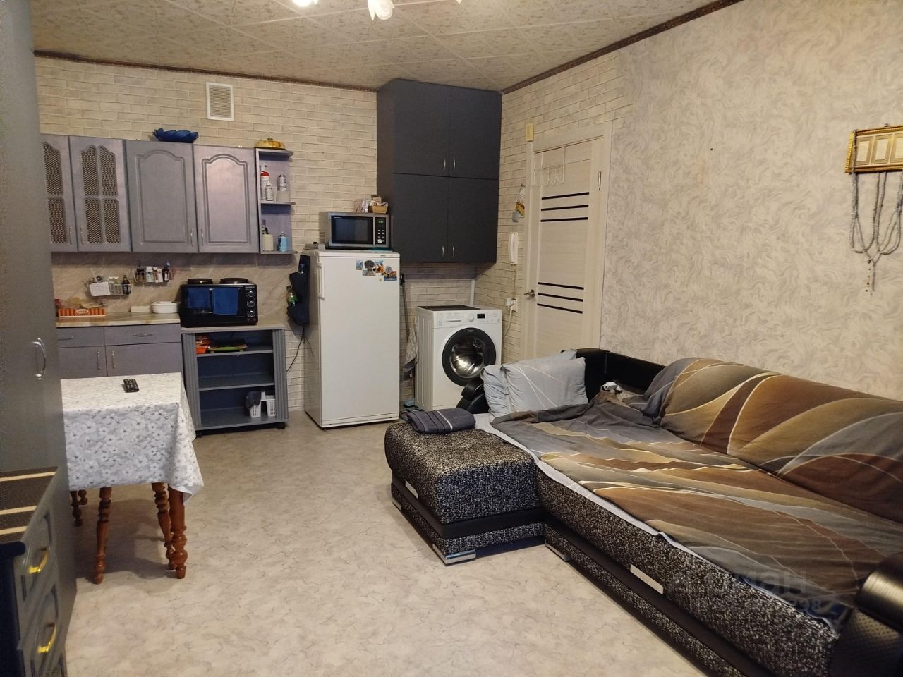 в туалете имеется водонагреватель, в комнате, кондиционер, стиральная машинка, холодильник, духовая печь, плитка, микроволновка, телевизор, пылесос, угловой диван шкафы столы, стулья, кухня.