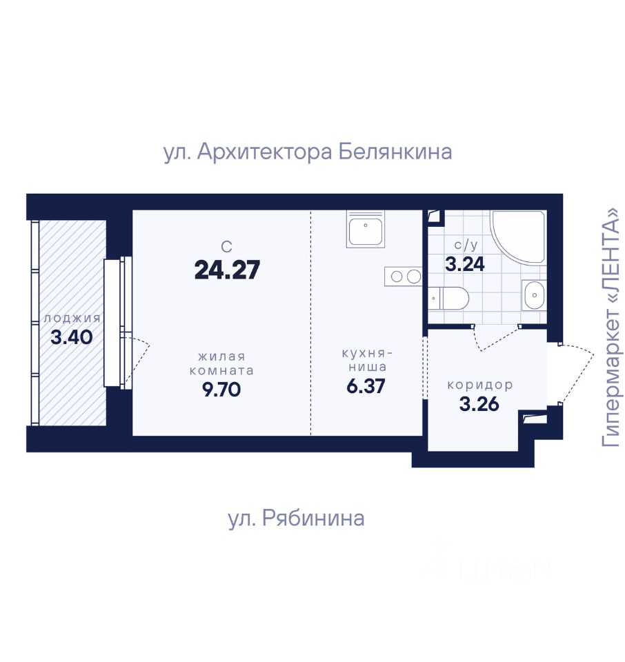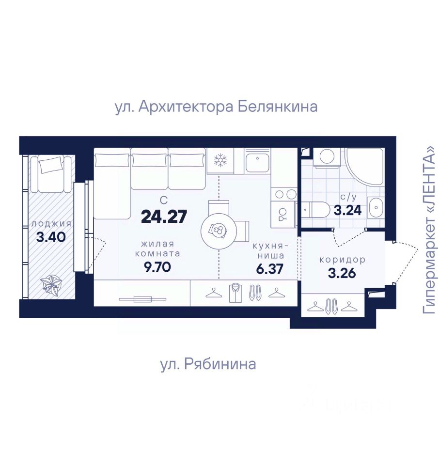 Общая площадь24,27 м2