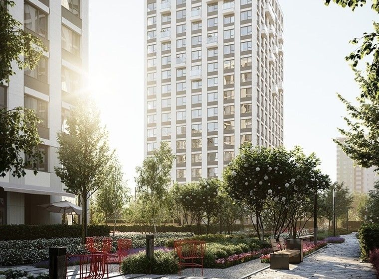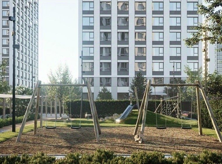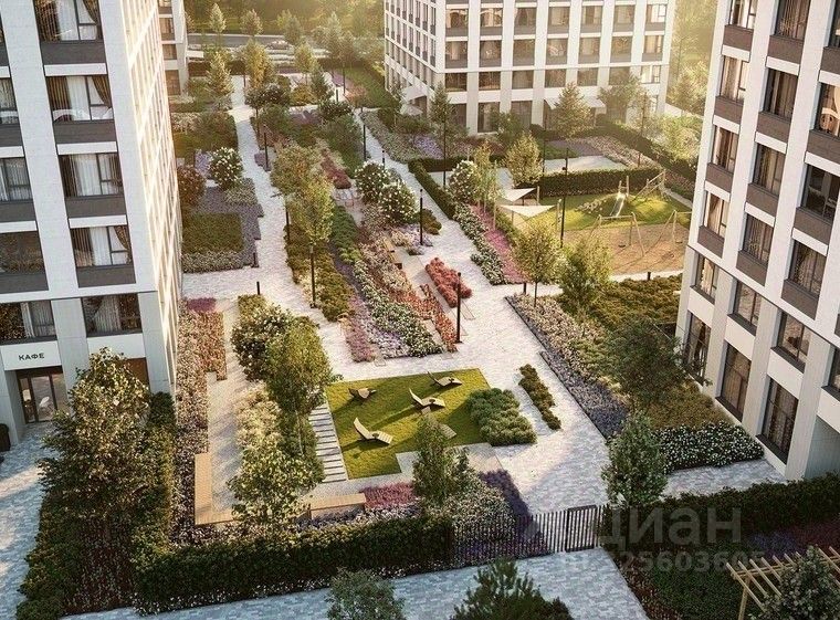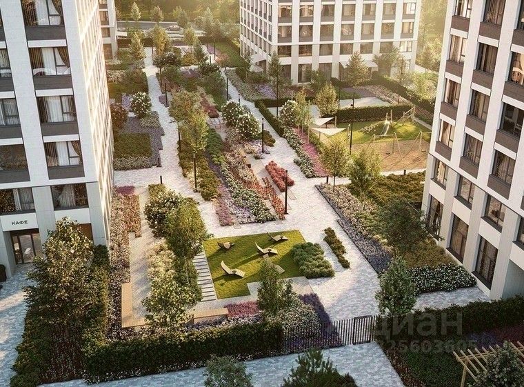 Во дворе нет машин. Это приватное пространство, попасть в которое могут только жители. Здесь спроектированы: променад, лаунжи с садовой мебелью, где, развалившись на шезлонге, можно почитать или поработать, и детские площадки.