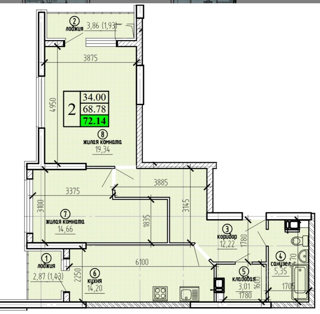Площадь квартиры указана без учёта лоджии.