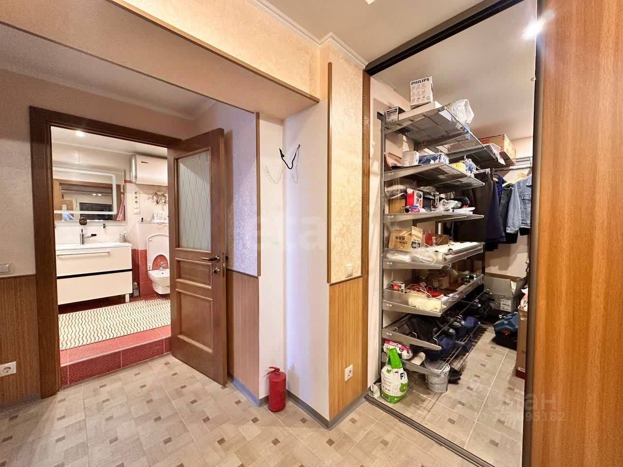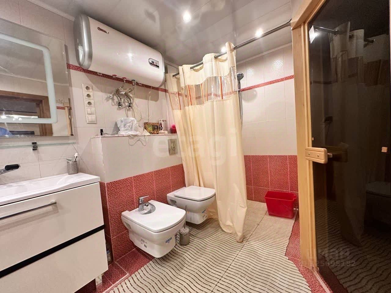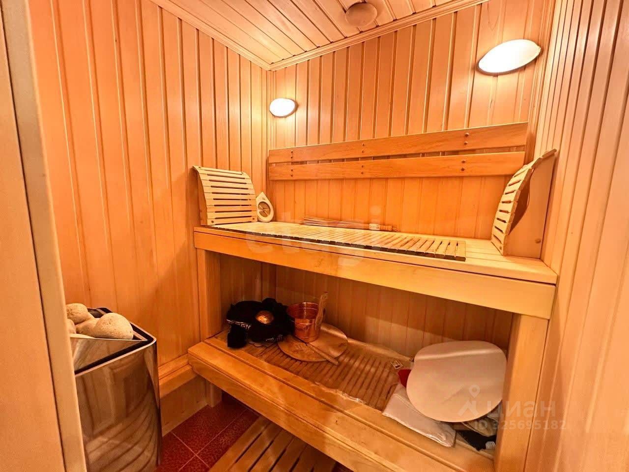 В квартире выполнен косметический ремонт. Два санузла: в гостевом унитаз, раковина, стиральная машинка, а в основном ванна, душ, унитаз, биде и сауна. Для сауны проложен специальный силовой кабель.