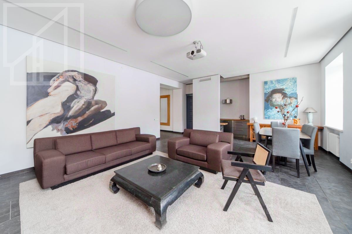 Планировка: кухня-гостиная, мастер-спальня со своим санузлом, спальня, санузел с сауной, гардеробная. Потолки 3.2 м. Квартира полностью с мебелью, вывоз обсуждается. Окна выходят на обе стороны.