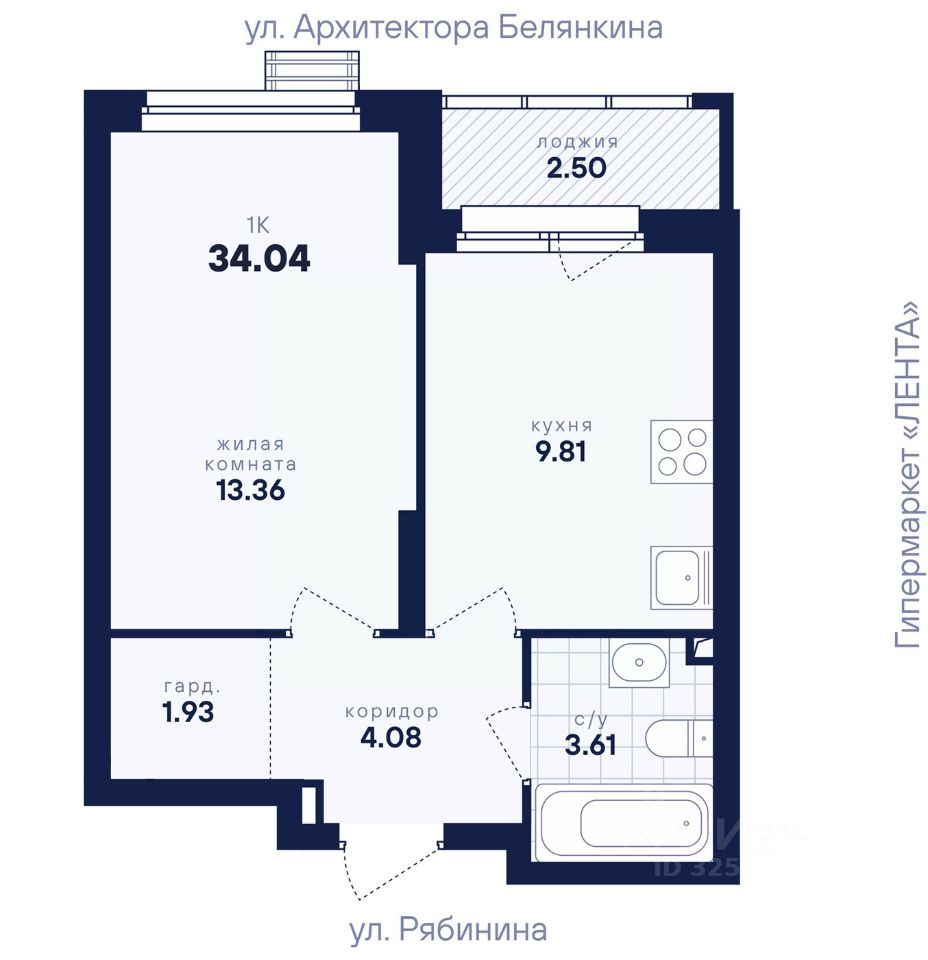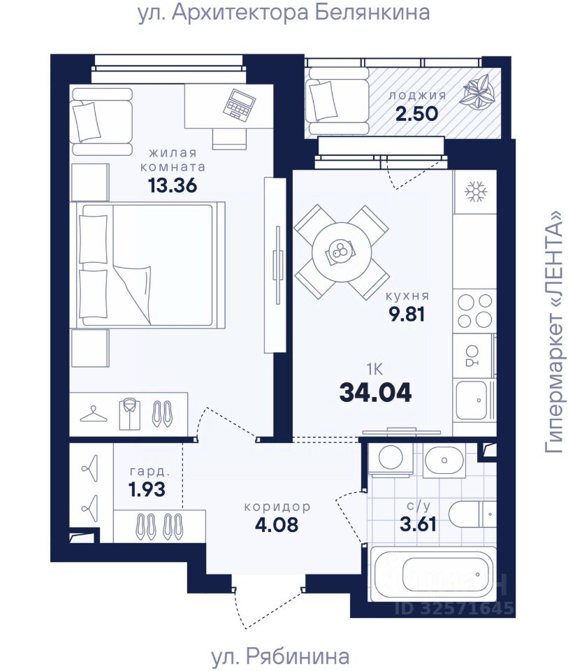 Общая площадь34,04 м2