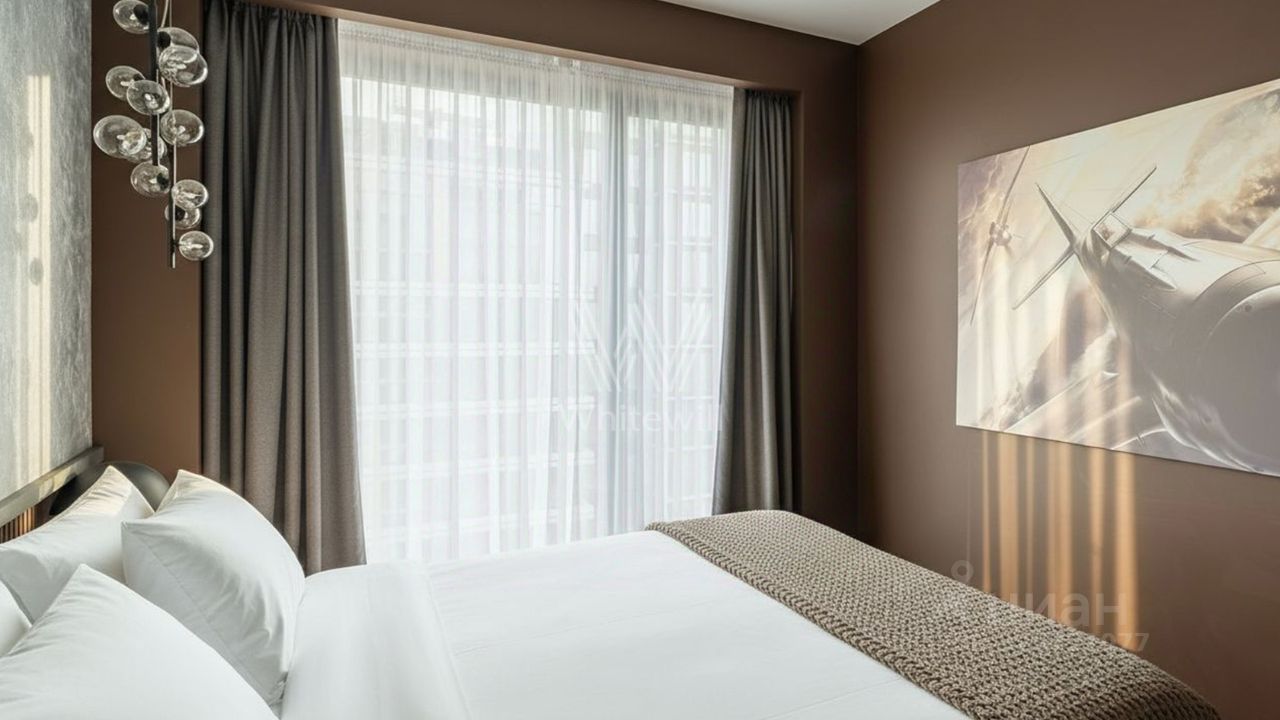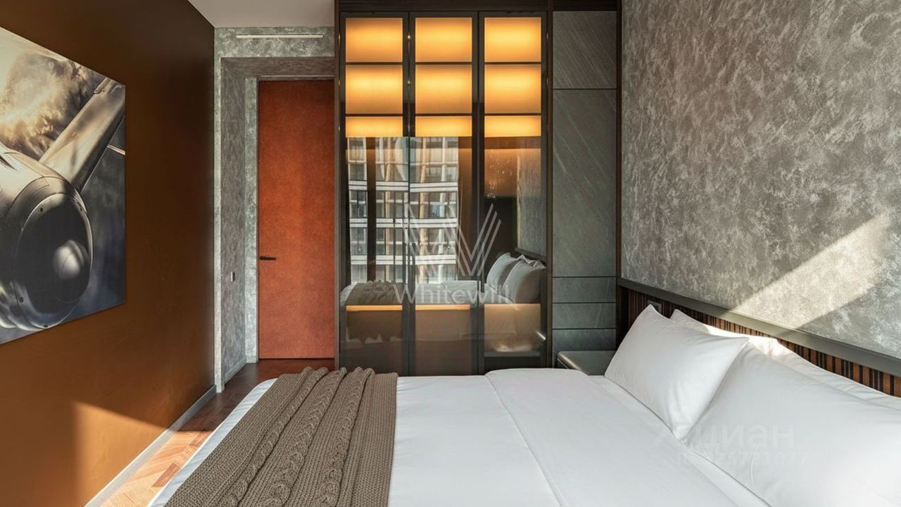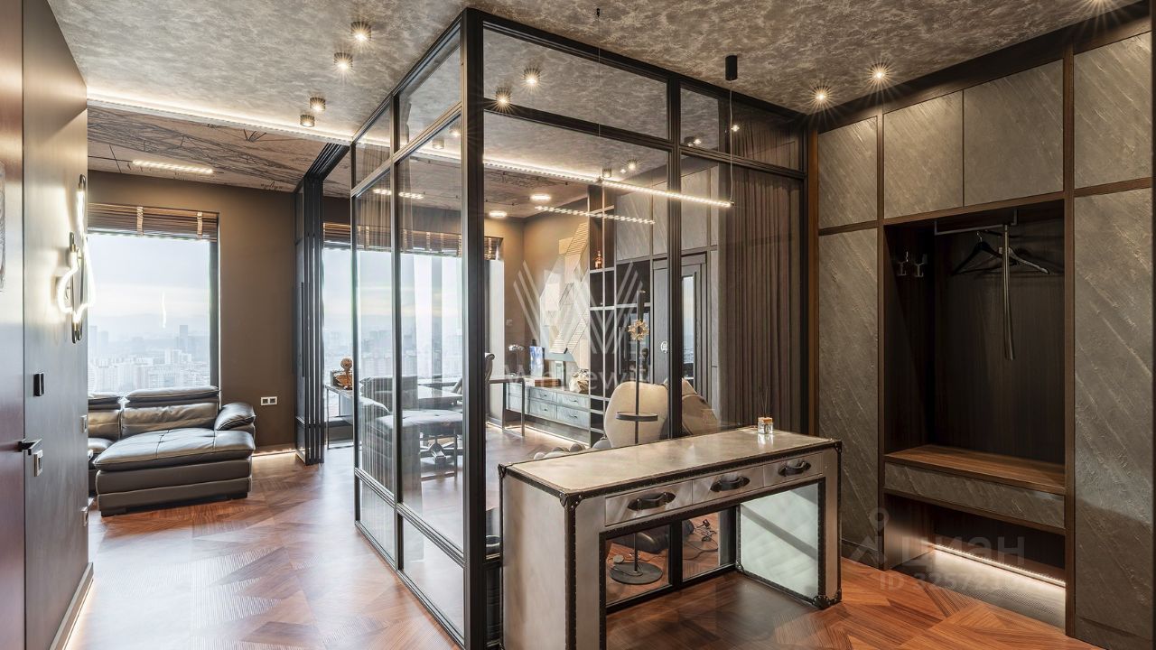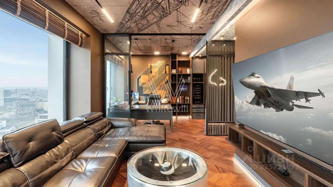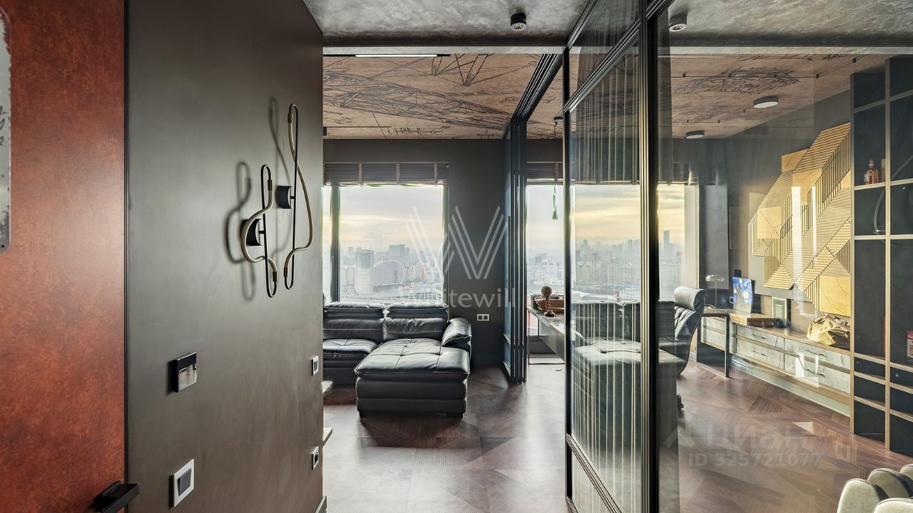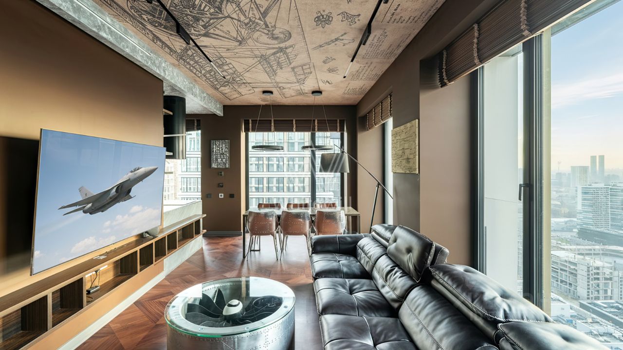 Видовая квартира с 2 спальнями общей площадью 90 м² в комплексе премиум-класса Prime Park с презентабельной входной группой от британского бюро Dyer. Квартира расположена на 31 этаже, откуда открываются панорамные виды на город и башни ''Москва-Сити''. Выполнена дизайнерская отделка по индивидуальному проекту. Интерьер оформлен в современном стиле с уклоном в авиацию.