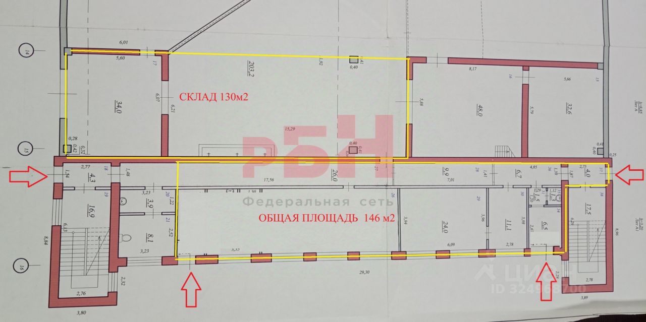 Общая площадь помещений( без склада) 146 м2. В настоящий момент открытое пространство 55м2 + кабинеты, бытовые помещения и коридор, возможна перепланировка с увеличениемоткрытого пространства до 136 м2 - 3 независимых выхода на улицу + выход на территорию базы, - высота потолков 3, 1 м, - полы плитка, потолок армстронг, свежий ремонт в части помещений, - светлое помещение, большие окна, - возможность размещения рекламы на фасаде здания, - большая асфальтированная парковка перед зданием, возможность парковки внутри охраняемой базы, - рядом в здании склад 130 м2 с выходом в помещение, отдельными воротами и зоной разгрузки, - эл мощность 50 кВт, - возможен круглосуточный доступ 24/7, - здание является частью производственной базы, охрана, офисы, помещения различного назначения, открытые площадки, - первая линия Стромиловского шоссе, выезд на Южное шоссе, Обводную трассу, остановка общественного транспорта в шаговой доступности.