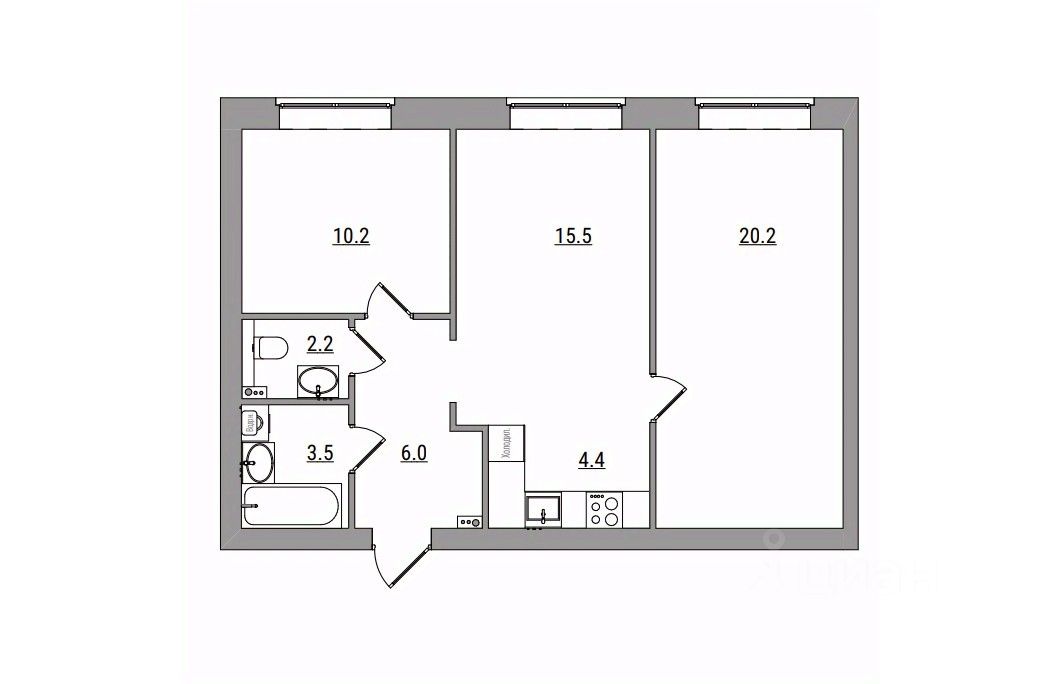 3-комнатная, 62 м², 41 по адресу Парковая, 1б Тип дома: Кирпич. Жилой комплекс ''Сити Парк''Преимущества покупки квартиры в новостройке напрямую от застройщика КСМ: