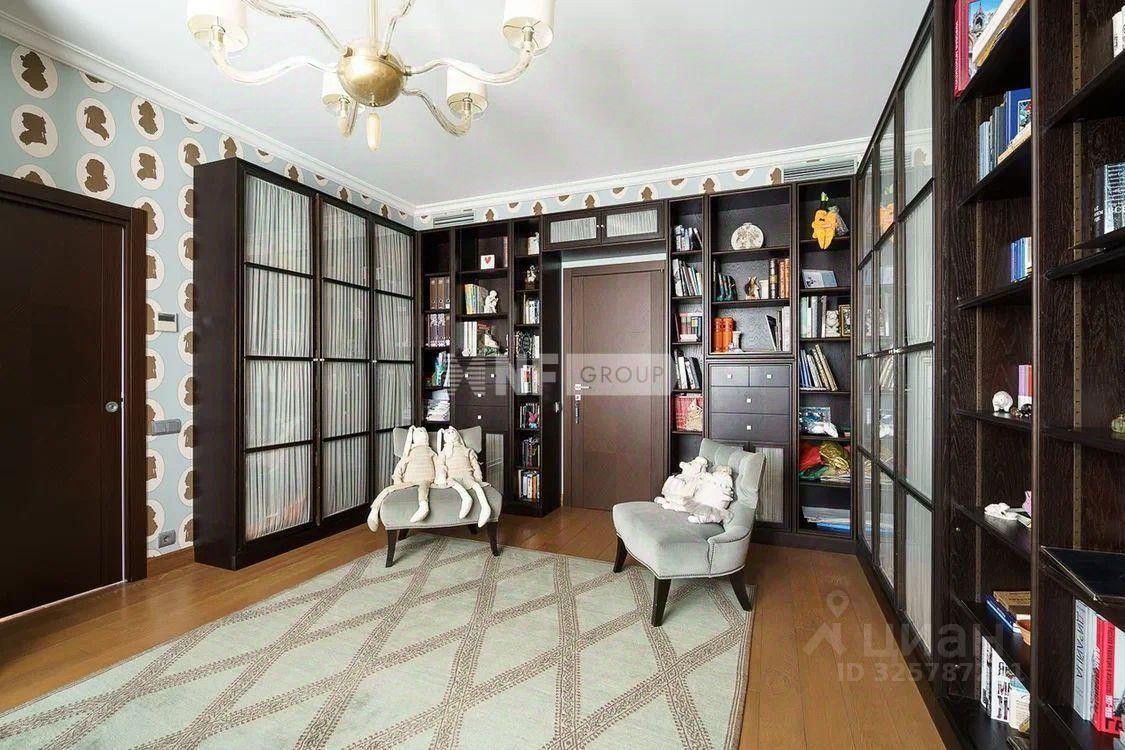 Лот: 78909. Эксклюзив NF GROUP. В продаже эксклюзивная 6-комнатная квартира площадью 492 м² в клубном доме Lake House в Раменках. Пространство спроектировано для комфортной жизни большой семьи: гостиная-столовая, кухня с кладовой, мастер-спальня с кабинетом, ванной и гардеробной, 3 детских (гостевых) спальни со своими санузлами и гардеробными, детская гостиная, кинозал, винно-сигарная комната, постирочная, спальня для няни. В квартире два независимых входа — для хозяев и для персонала, что обеспечивает высокий уровень комфорта и приватности. Выполнена отделка в стиле современной классики с использованием премиальных материалов и мебели брендов Baker, Ralph Lauren, J Robert Scott. Улучшенная шумоизоляция, потолки — 3 м.