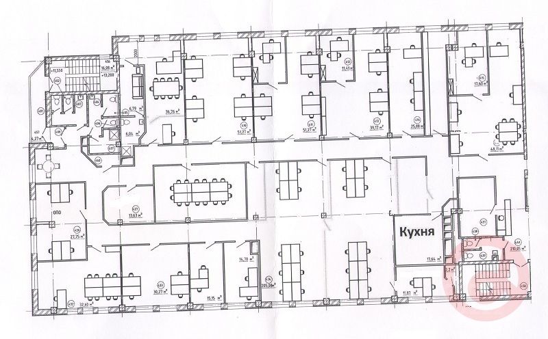 Четвертый этаж 10-этажного здания. 2 пассажирских лифта. Круглосуточная охрана. Отличное состояние мест общего пользования. Предлагаемый в аренду офис представляет собой изолированный блок. Рабочие кабинеты расположены по периметру офиса. В центре офиса находится переговорная комната. Имеется зона руководителя. Комната приема пищи. 3 санузла для сотрудников + санузел в комнате отдыха руководителя. Разводка локальной сети, установлено множество розеток. Пожарная сигнализация, центральное кондиционирование. Дополнительно к ставке аренды арендатор оплачивает потребленную электроэнергию и вывоз мусора.