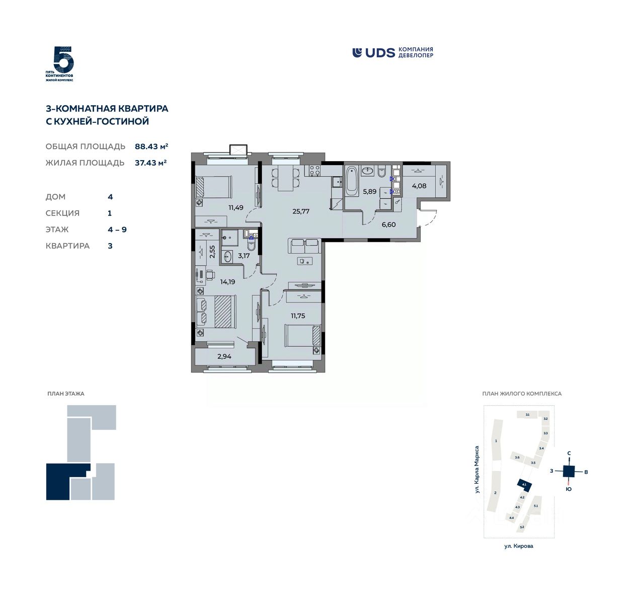 Общая площадь88,43 м2