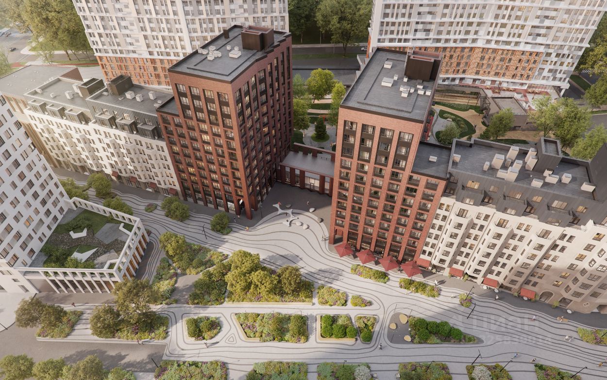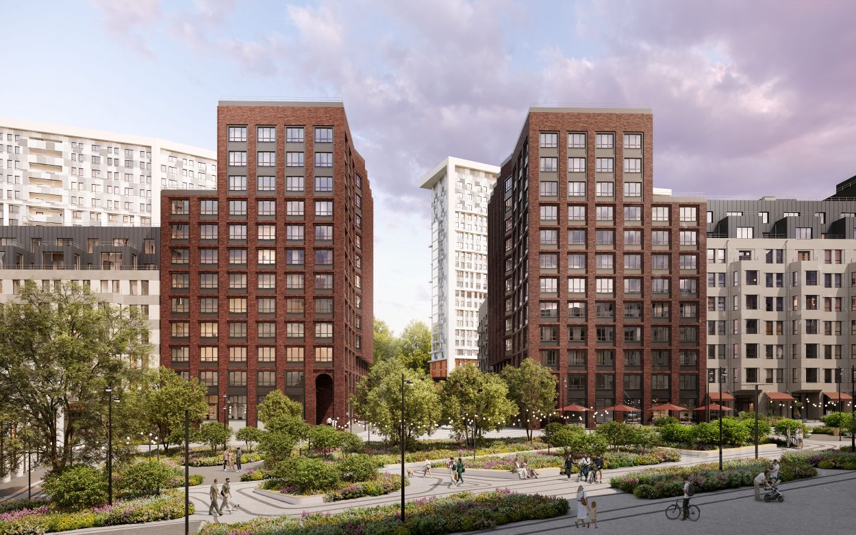 Здания комплекса примыкают друг другу торцами и создают единую архитектурную форму. Дома по обе стороны бульвара задают направление для прогулок, а волнообразный рисунок брусчатки и плавные изгибы делают бульвар похожим на русло реки. Каждый дом комплекса отличается от другого этажностью, формой, цветом, геометрией фасада.