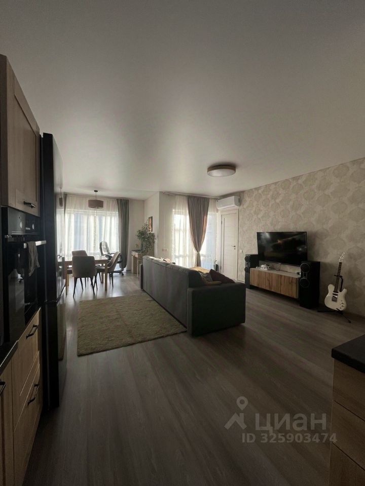 Планировка: просторная гостиная, объединённая с кухней, три изолированные спальни, отдельная ванная комната, котельная с дополнительным умывальником и санузлом. По всему дому — водяные тёплые полы, кондиционер в гостиной, шкафы-купе в прихожей и спальне.