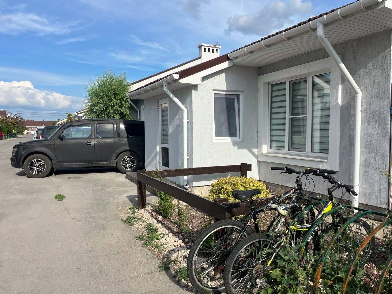 Территория комплекса — закрытая, с контролем въезда через шлагбаум. Тишина, чистый воздух, ухоженные зоны отдыха и асфальтированные внутренние дороги. Перед домом — собственная парковка на 2 автомобиля: просторно и удобно, без компромиссов. К дому примыкает застеклённая прихожая-тамбур — защищает от ветра и осадков. Веранда и внутренний дворик — удобны для отдыха и повседневных дел: утренний кофе, барбекю, цветник.