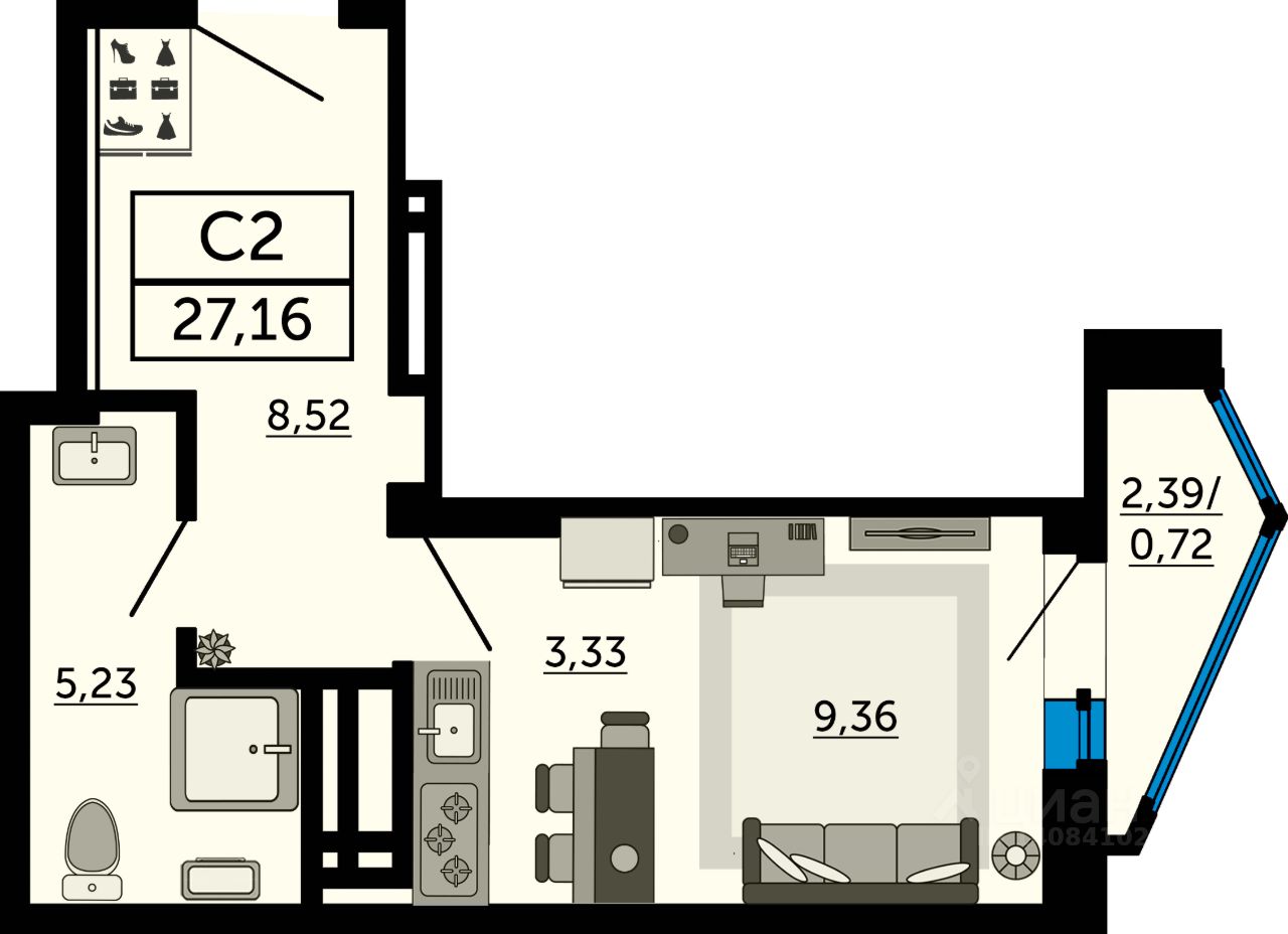 В продаже квартира-студия в новостройке, в стройварианте. Лучшее решение для молодой семьи, под сдачу или для инвестиций. Это современный вариант просторной студии с полноценной прихожей. Благодаря продуманному зонированию при входе достаточно места для зоны хранения вещей. Вся площадь будет использована максимально эффективно для работы и отдыха. Наиболее выгодная цена на этапе строительства. Успейте забронировать квартиру мечты напрямую от застройщика.