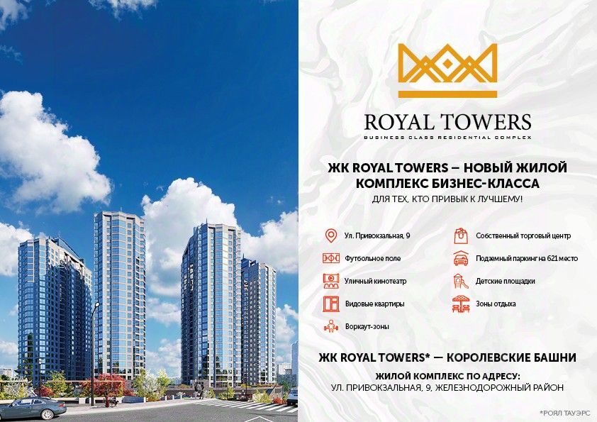 ЖК Royal Towers - жилой комплекс бизнес-класса по адресу ул. Привокзальная, 3А. Это 4 дома с богатой внутренней инфраструктурой, современной архитектурой и множеством других особенностей: - Монолитно-каркасная технология строительства. - Облицовка кирпич в соответствии с ГОСТом - Срок ввода в эксплуатацию II квартал 2026 года. - 4 литера по 26 этажей. - В центре города. - Подземный паркинг. - Лаунж-двор. - Уютные и безопасные детские площадки. - Зоны для воркаута на свежем воздухе. - Торговый центр на территории ЖК.