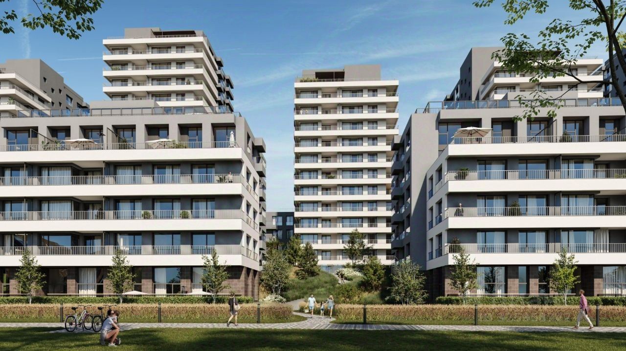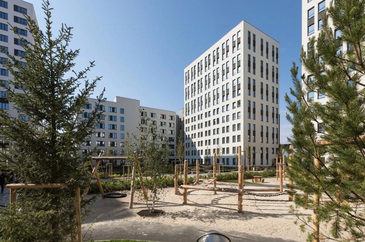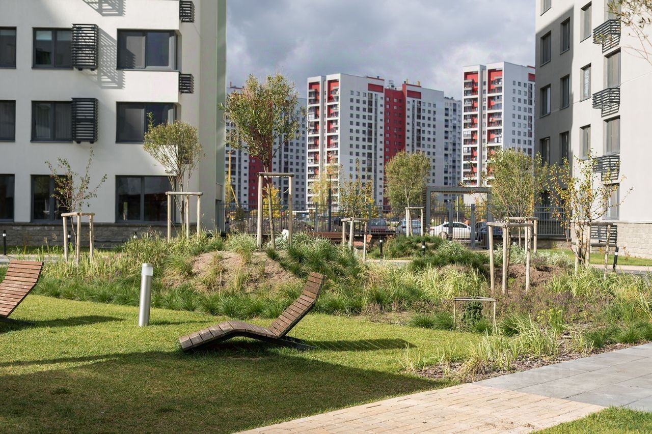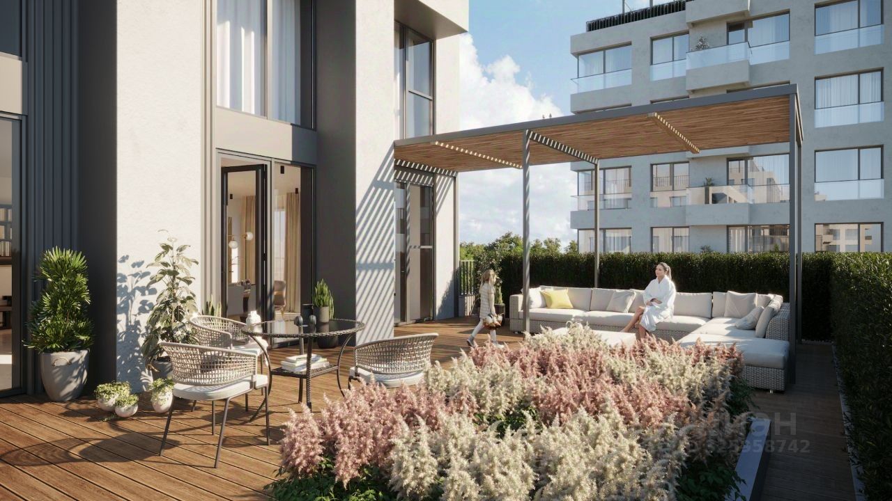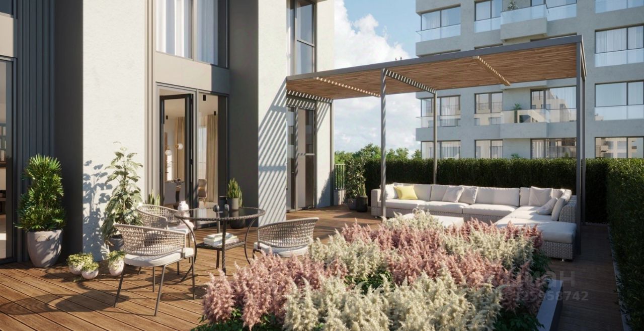 Квартира с кухней-гостиной и двумя спальнями в квартале Авиатор. Особенности планировки: разнесённые спальни, свободная планировка, терраса на крыше.
