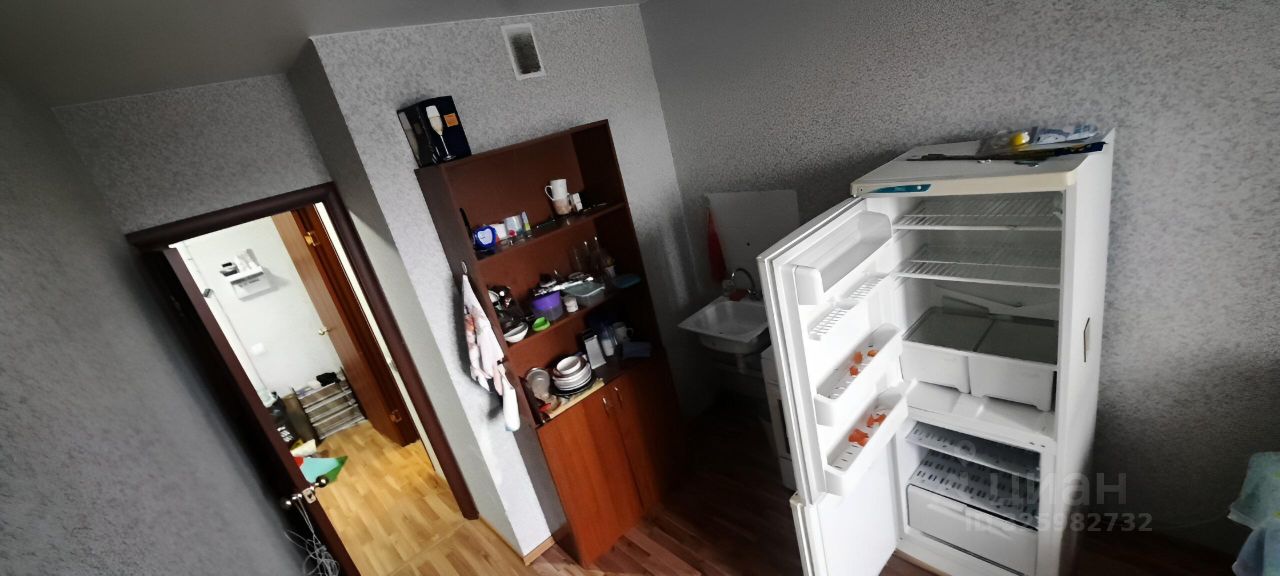 Кухня просторная, площадью 12 мг, оборудована холодильником и обеденным столом. Из комнаты выход на застекленный балкон. В квартире имеется мебель: диван и стол.