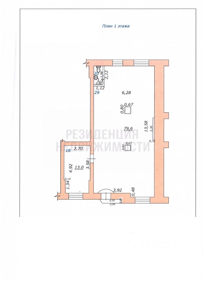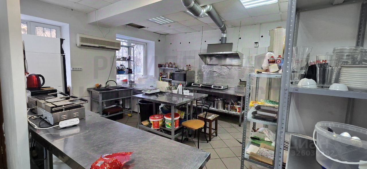 В данный момент помещение используется под общепит и разделено на зал и кухню, Также в помещении смонтирована вытяжка, которая выходит на крышу здания.