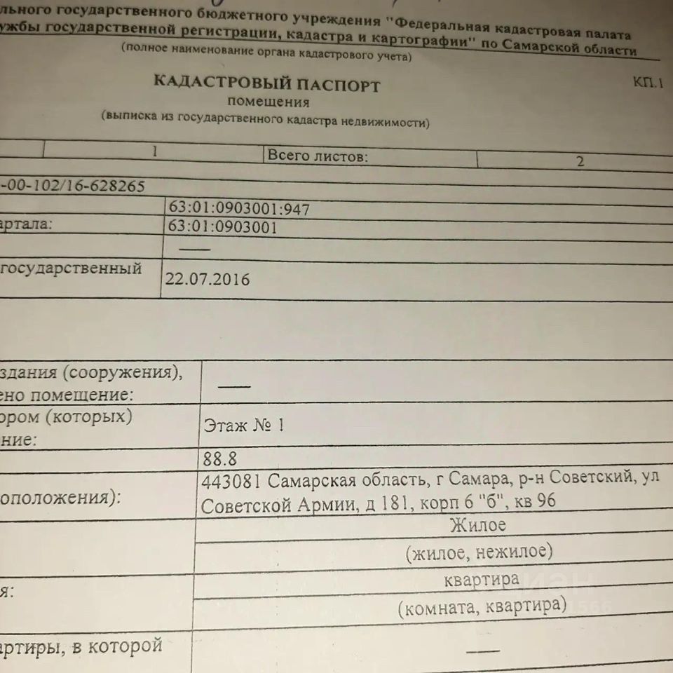Свободная планировка 2 ком квартира без ремонта- черновуха 1 этаж Общая площадь 88.8 кв.м Лоджия со стеклопакетами 8.5 кв.м Общая расчетная площадь 97.3 кв.м. Продаётся просторная двухкомнатная квартира площадью 88.8 квадратных метров на первом этаже кирпичного дома, расположенного по адресу: город Самара, 6-й микрорайон, улица Советской Армии, дом 181 к6Б. Жилая площадь составляет комфортные 56.5 квадратных метров, а кухня занимает 32.3 квадратных метра, предоставляя достаточно места как для приготовления пищи, так и для семейных ужинов.