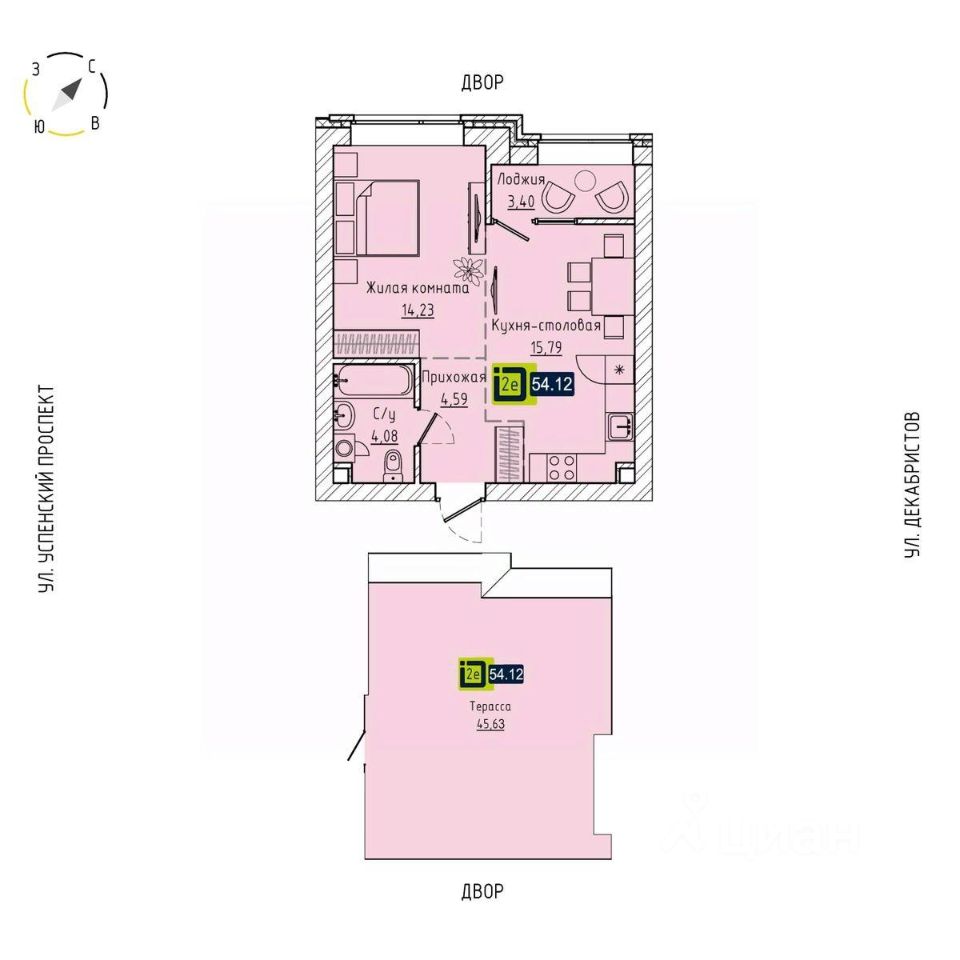 Общая площадь54,12 м2