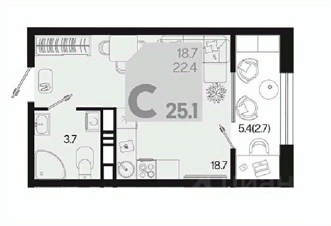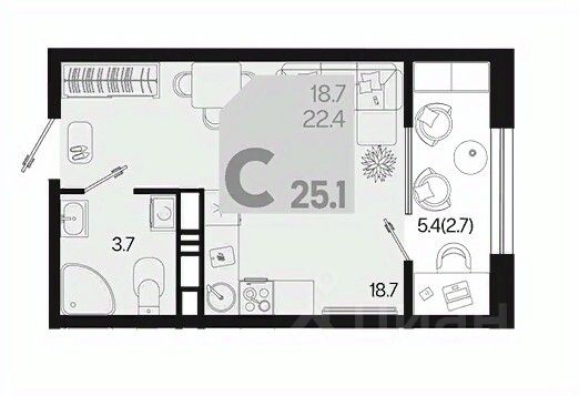 Общая площадь25,1 м2