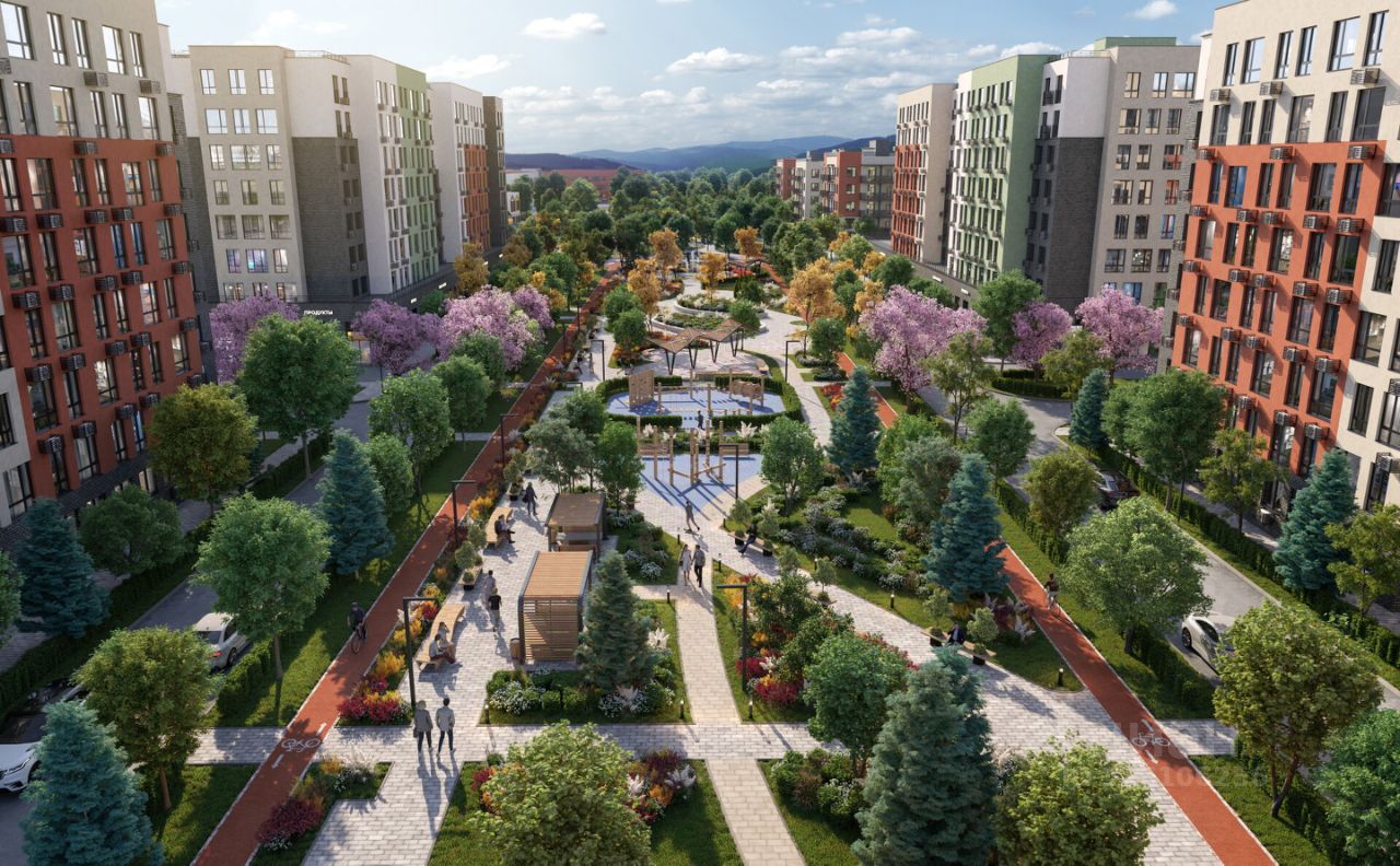 Территория комплекса благоустроена, организованы аллеи для прогулок, детские площадки и спортивные зоны. Для автовладельцев предусмотрена стоянка.