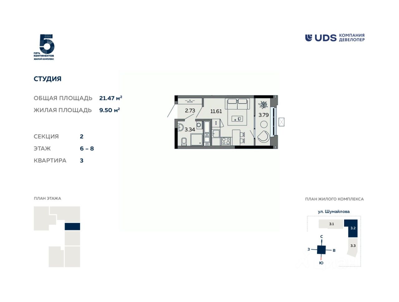 Если вы хотите жить в невысотном доме в спокойной обстановке, то в ''Пяти континентах'' вам подойдут уютные дома с эркерами и лоджиями высотой всего 7-9 этажей. А если нравятся высотные дома, то в ''Пяти континентах'' вы увидите и высотные секции внутри квартала высотой 12 и 17 этажей.