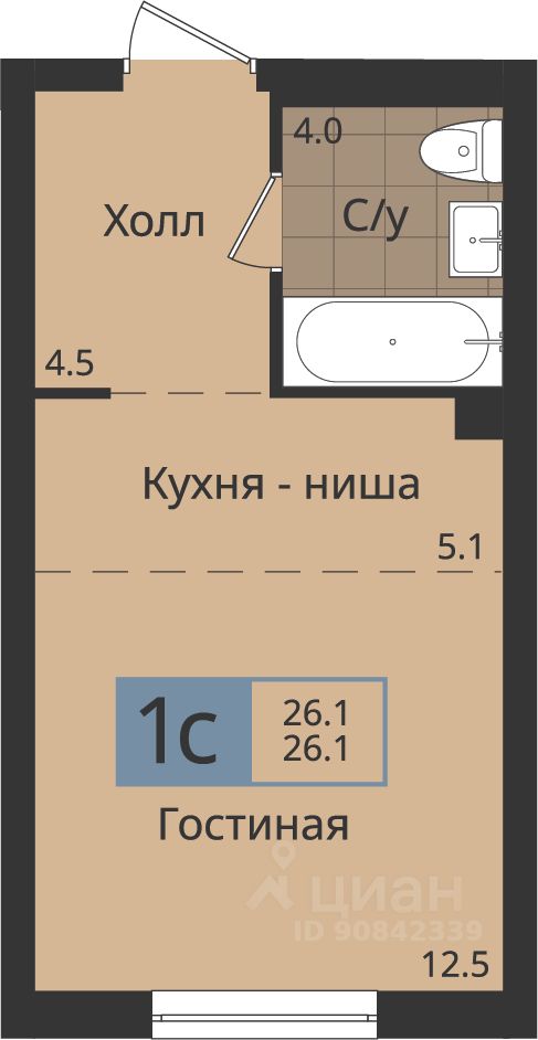Общая площадь26,1 м2