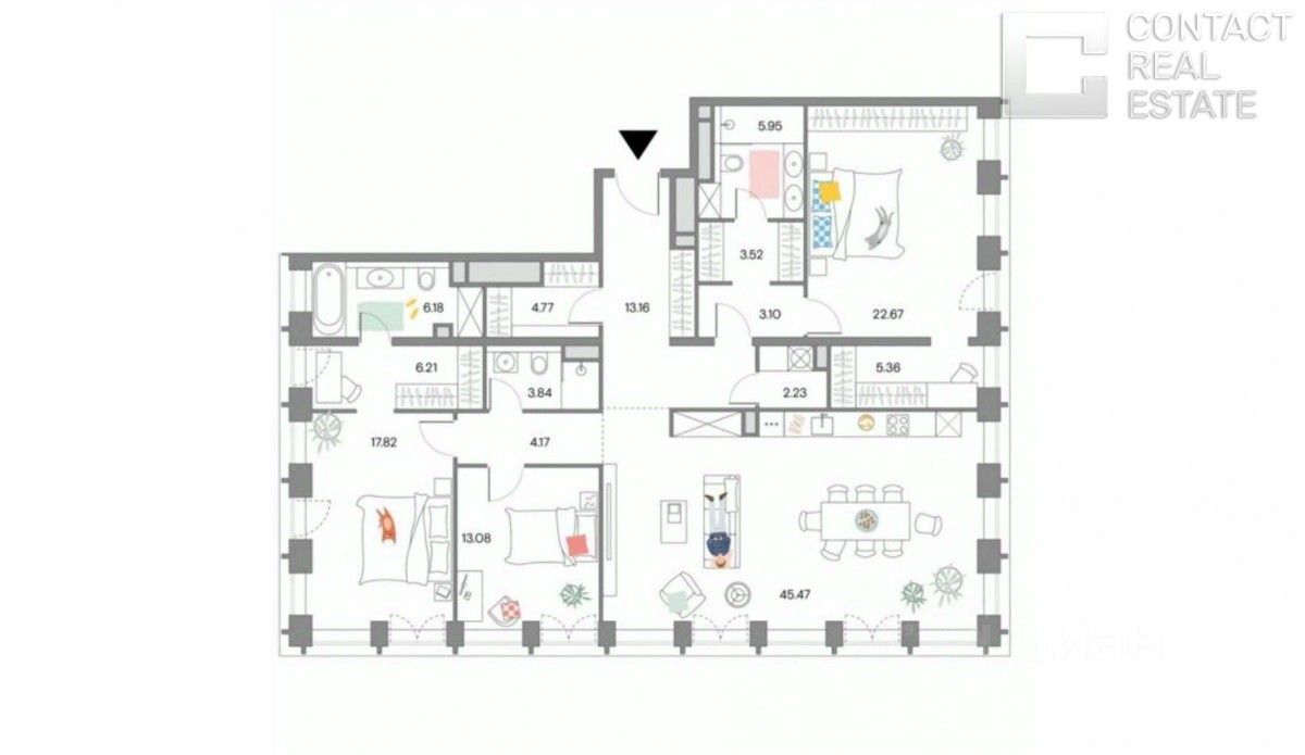 Предлагается на продажу 4-х комнатная квартира площадью 165 кв.м в жилого комплексе премиум-класса Lucky на Пресне Функциональная планировка включает: кухню-гостиную с зоной столовой, просторную мастер-спальню с ванной и гардеробной комнатой, детскую и уютную спальня, три санузла и четыре гардеробные, а также постирочную зону. Уникальная особенность лота — вид на 3 стороны света. Квартира находится на 12 этаже — из панорамных окон открываются чудесные виды на три стороны света: на Москва-Сити, Нижний город Лаки. Благодаря высоким потолкам , французским балконам пространство наполнено приятным солнечным светом. В квартире выполнена качественная премиальная отделка, включая оборудованные ванные комнаты и кухни итальянского бренда DADA. Интерьер выполнен в стиле White с тонированным полом из натурального дерева. В отделке ванных комнат использованы премиальные европейские бренды: Villeroy & Boch, Kaldewei, Gessi. Стены оформлены терраццо — материалом, состоящим из мельчайших элементов мрамора, гранита и других натуральных камней. Качество и комфорт жизни владельцев квартир обеспечивает целый комплекс инженерных систем, включающих технологии очистки воздуха и воды. Оборудована система ''Умный дом'', которая позволяет устанавливать индивидуальные параметры температурного режима, влажности и других удобств. Для решения бытовых вопросов жителей работает Служба комфорта на ресепшн. Lucky — жилой комплекс премиум- класса в Пресненском районе, в 200 метрах от станции метро ''Улица 1905-го года''. Проект квартала разработали ведущие профессионалы российских и международных архитектурных бюро. Территории закрыта для посторонних и находится под круглосуточной охраной. [Лот #24581]