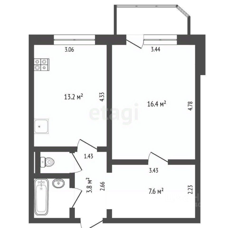 Квартира с хорошей планировкой - большая кухня, просторная комната, раздельный санузел. Удобный средний этаж, чистый подъезд.
