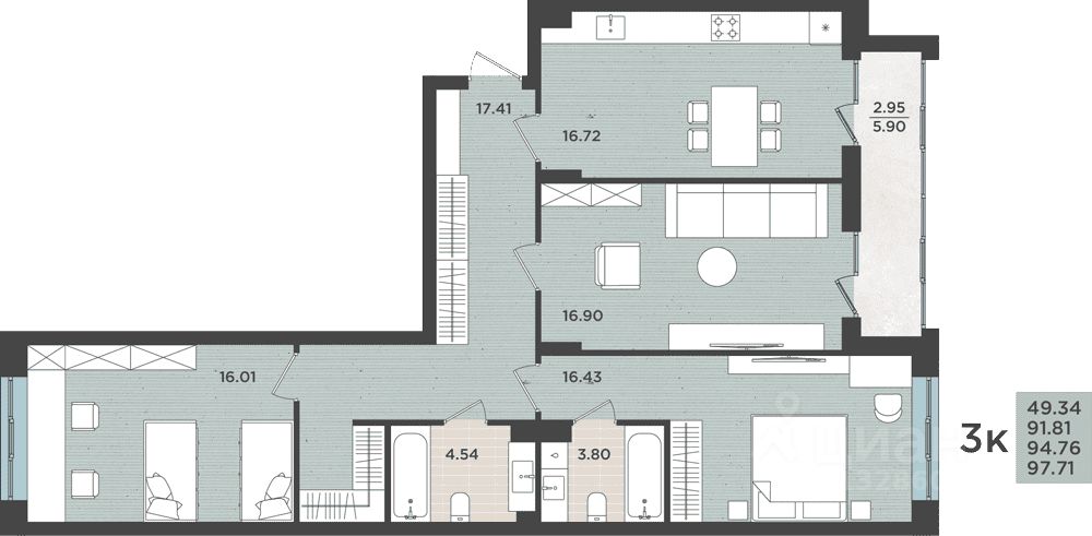 Продаётся 3-комнатная квартира в сданном доме (Земельная, 30 (Дом 1.2)), срок сдачи: I-кв. 2023, общей площадью 94.76 кв.м., на 1 этаже. Новый жилой комплекс ''Горький'' от застройщика ''Калининградстройинвест'' расположен по адресу: г. Калининград, улица Горького.