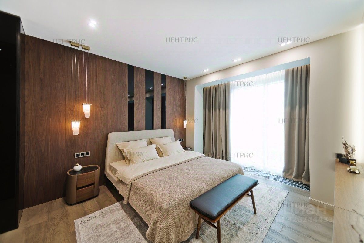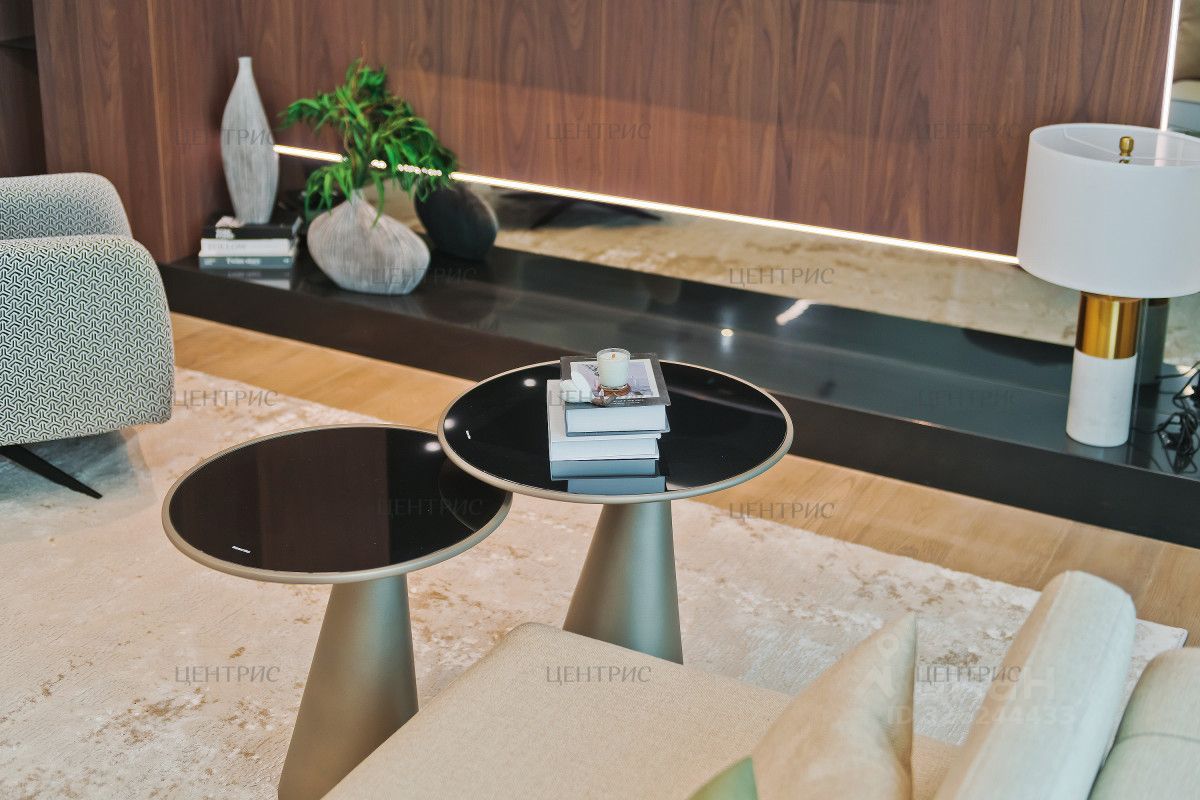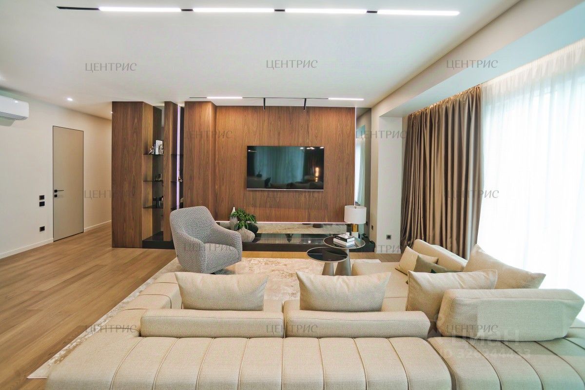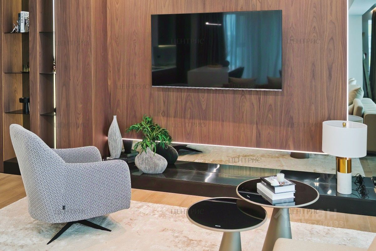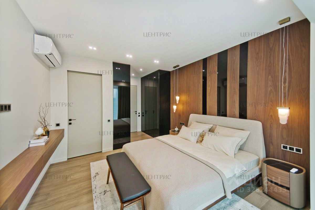 В отделке использованы натуральные материалы: дерево, дубовый шпон, инженерная доска. Установлена система индивидуального кондиционирования.