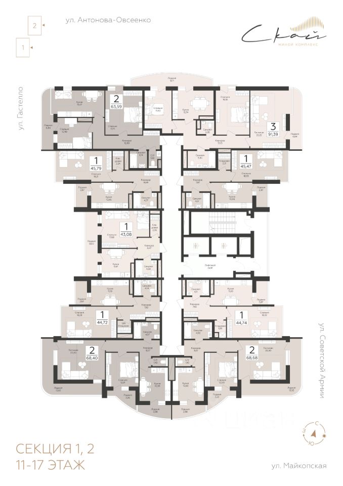 Продаётся 2-комнатная квартира в строящемся доме (Корпус 1), срок сдачи: III-кв. 2027, общей площадью 63.59 кв.м., на 11 этаже. Новый жилой комплекс ''Скай'' от застройщика ''ГК Развитие'' расположен по адресу Россия, Самара, улица Советской Армии.