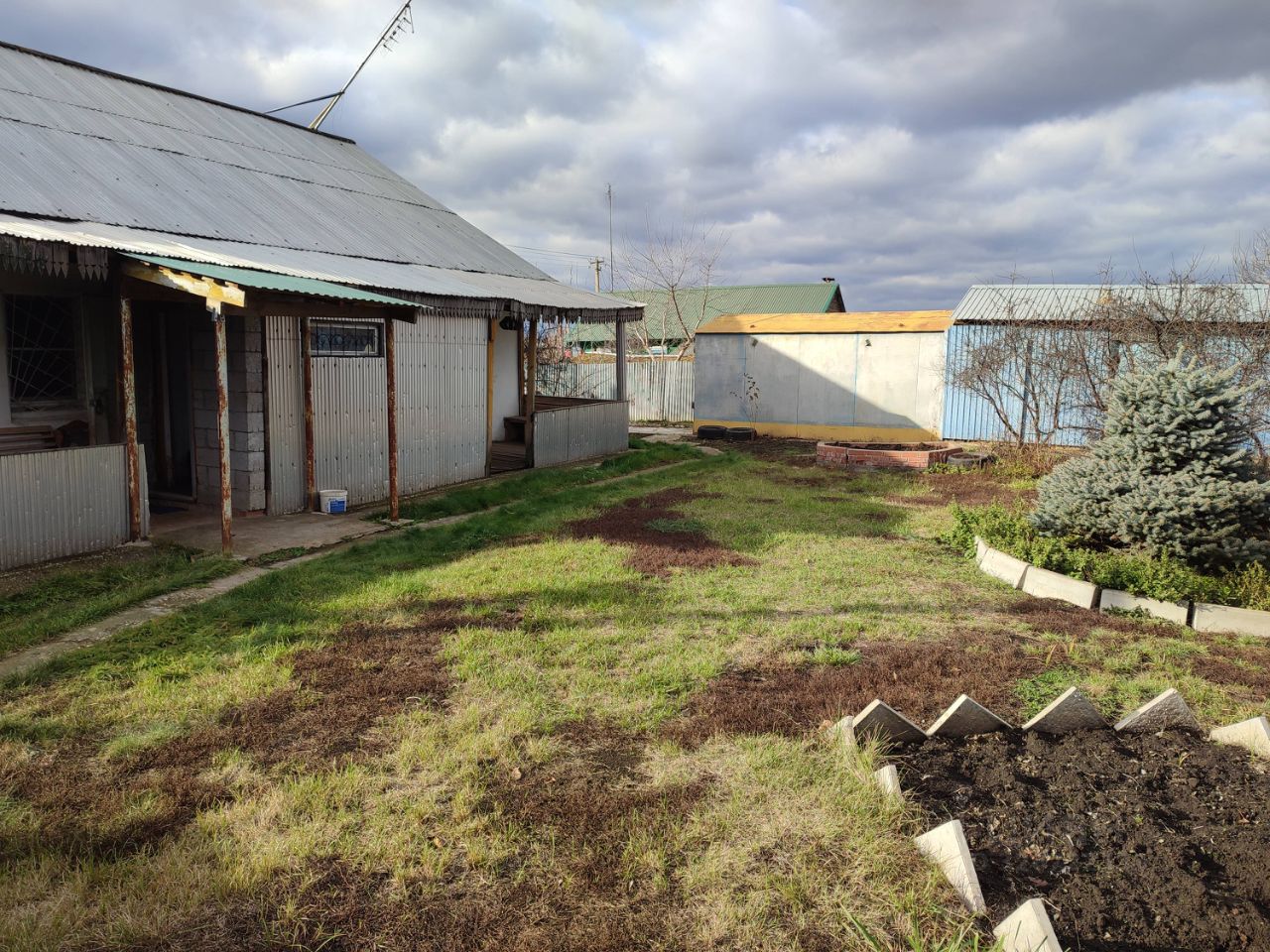 Сарай, погреб, железный гараж, баня.