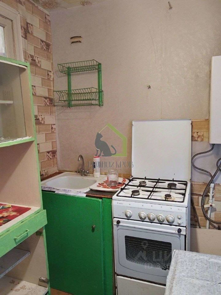 Квартира состоит из кухонной зоны, гостинной (совмещенной со спальным местом) и совмещенным санузлом. Окна выходят во двор.